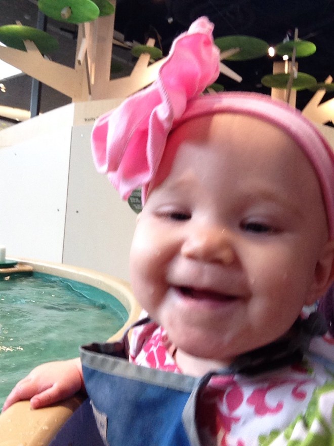 Of course we HAD to play in the water first. Lucy is quite the splasher, so we had to make sure we were not near anyone else and to wear an apron. We still got pretty wet.