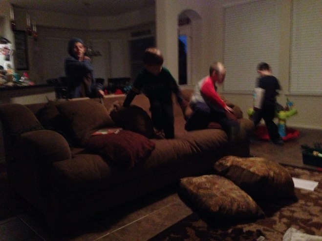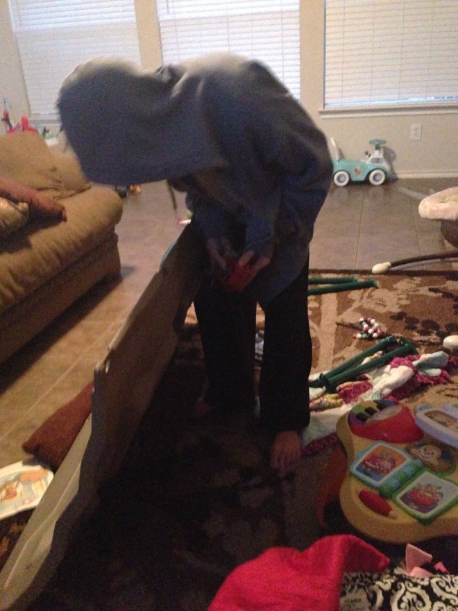 The kids got a fort play set for Christmas. With the crazy rain and cold weather lately, and a little munchkin getting into everything, I think we might be finished building it by the time Lucy graduates! π