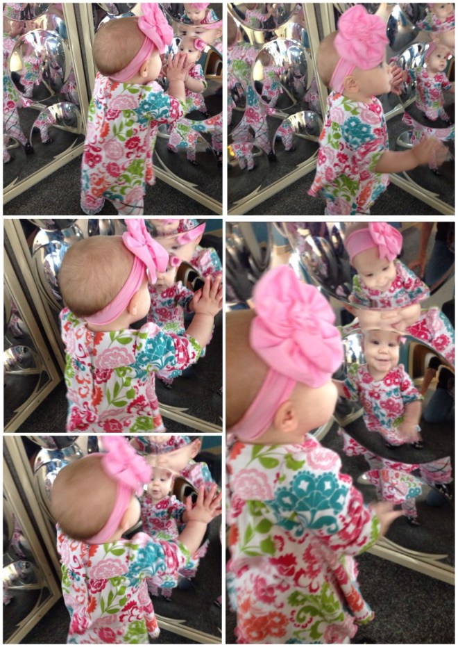 Lu didn’t care though. βΊοΈ She also loved the cityscape. She liked climbing up and down the bridges with all the big kids. She really enjoyed the mirror wall too. She loves looking at herself.