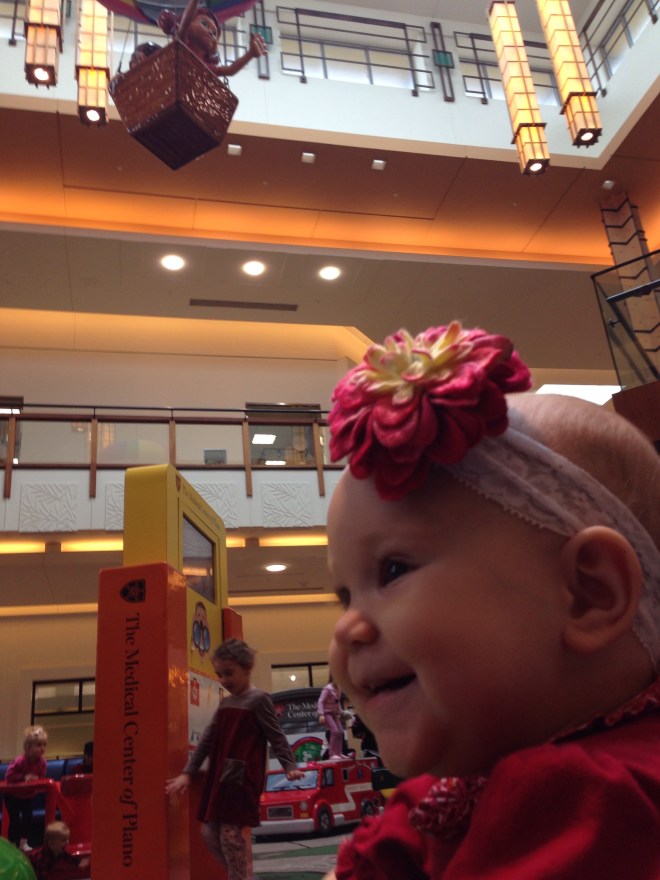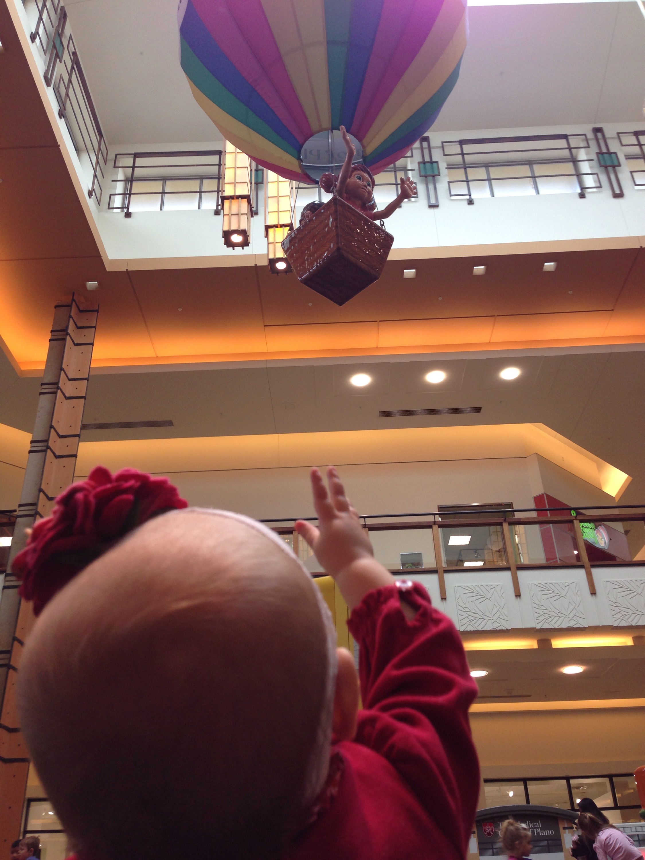 There was a mall decoration of a girl and boy in a hot air balloon hanging from the ceiling that Lucy was mesmerized by. Every time she would remember they were there, she would reach out her hand to wave and say “Hi” to it. She is such a funny little girl.βΊοΈβ€οΈ