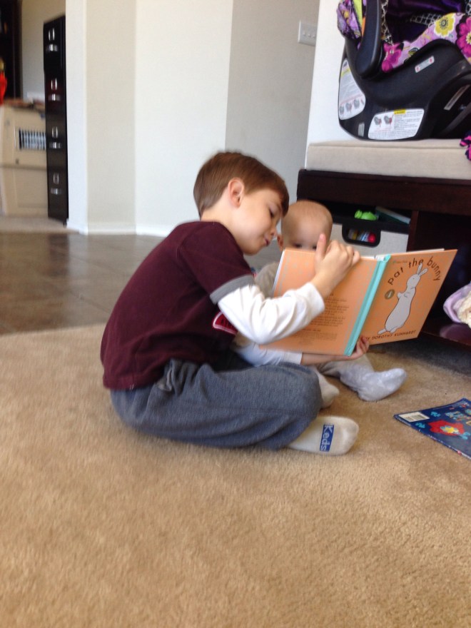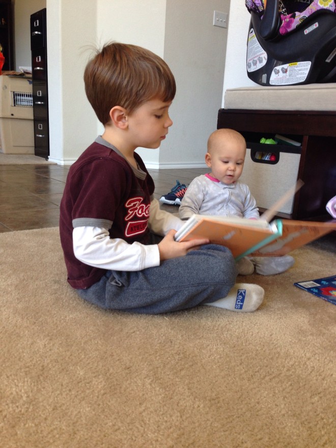 Alex woke up with a horrible cough this morning. Poor guy. His nose has just been terrible for MONTHS, but after 5 rounds of antibiotics, I am just not giving him anything else to try and clear it up. It doesn’t really seem to bother him, so I don’t see the reason. This morning, however, I thought he was going to need a breathing treatment. Luckily, as he got moving and had breakfast, he started to sound better. I kept him home just to be safe though. Lucy loved having the playmate.