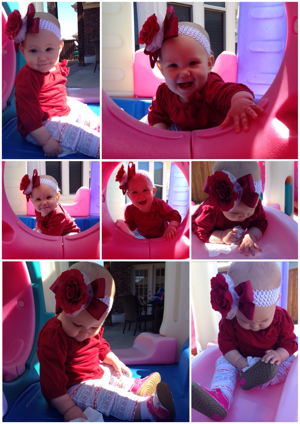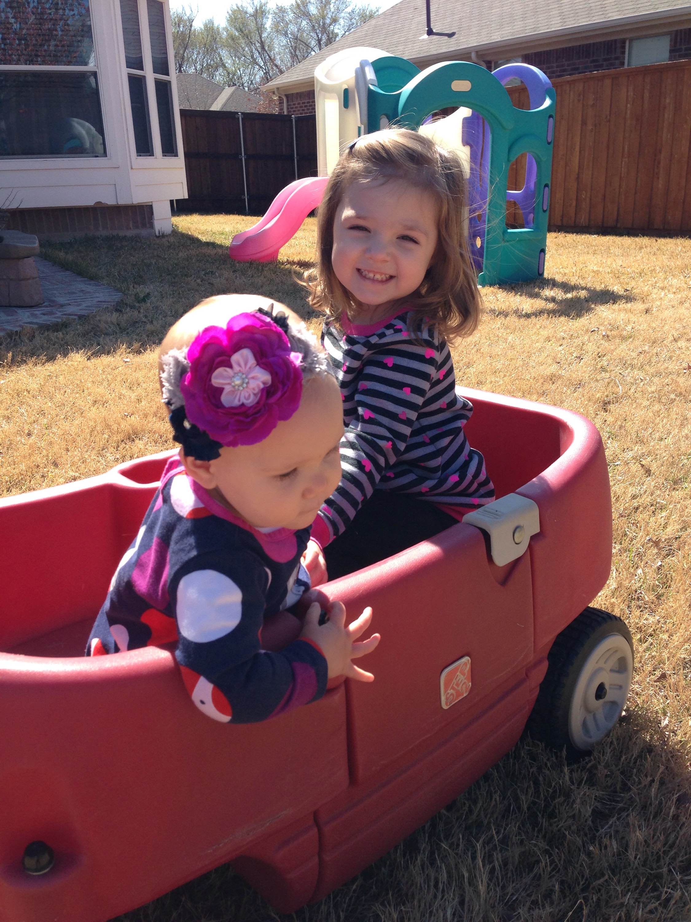 When I brought the girls home, Quinn was begging to go outside. It was a beautiful day! The girls had so much fun swinging, climbing, sliding, and just enjoying the sunshine.