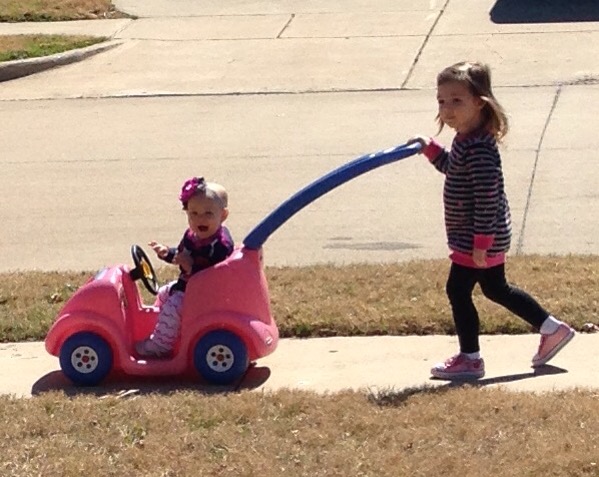 Quinn loved pushing Lucy in her buggy, then having me push her. Lucy loved it too.