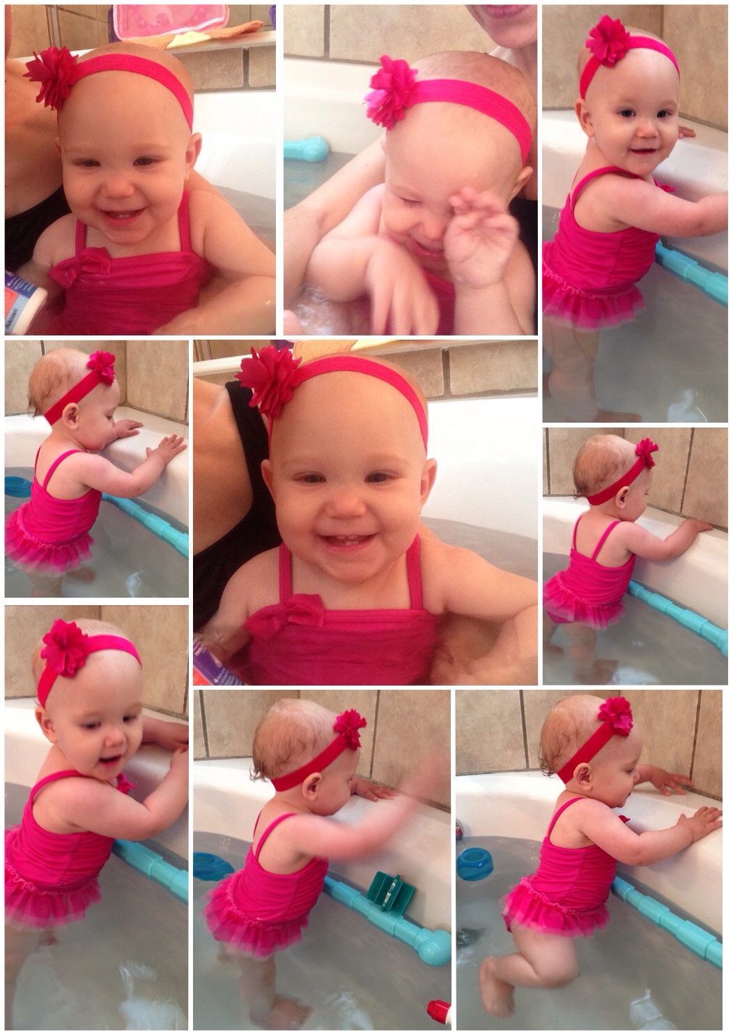 So, since her fever was still really high this morning, I thought it would be fun to take her swimming in our garden tub.