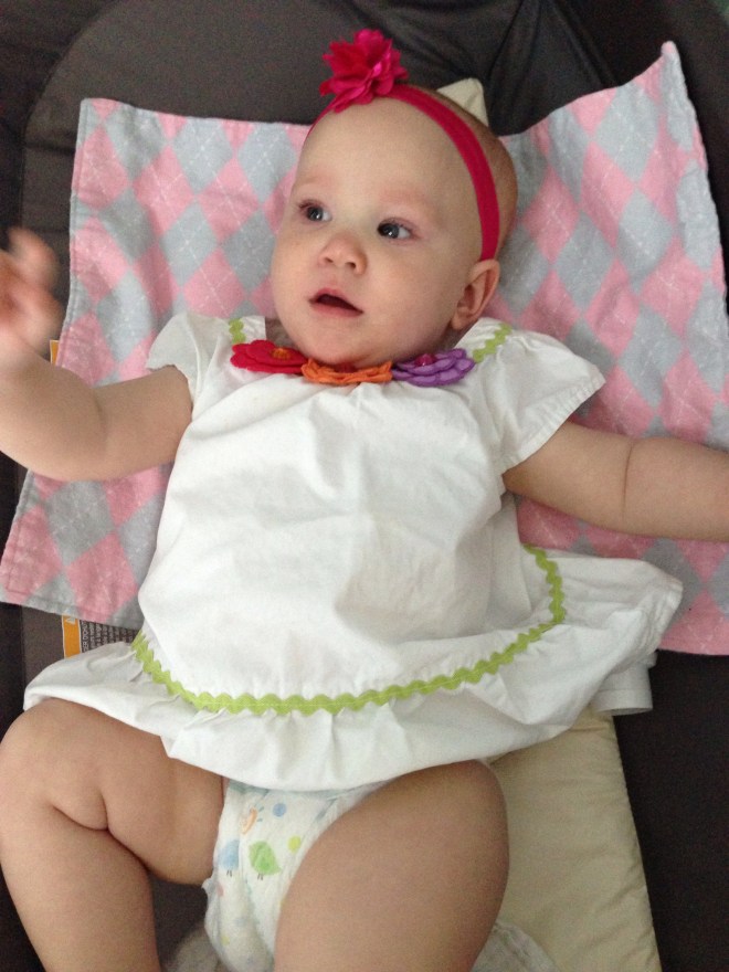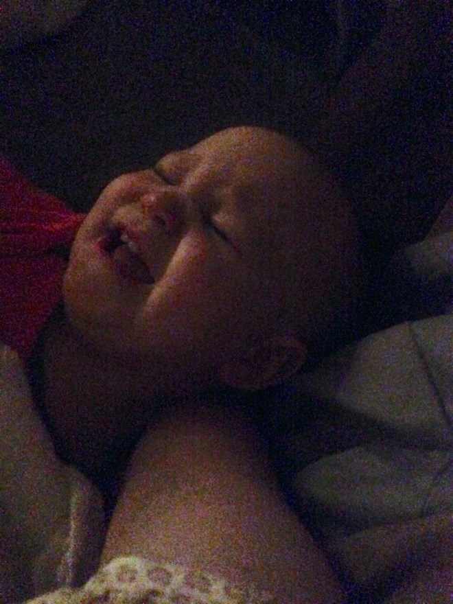 This poor baby girl needs a break so bad. Nothing like running a high fever for 4 days straight! She is so exhausted and miserable. She wants to relax and rest but the antibiotics have messed her tummy up so bad, she just cannot get comfortable. Every time I see this face, looks like a smile but is really a grimace, I know she’s about to arch and scream.