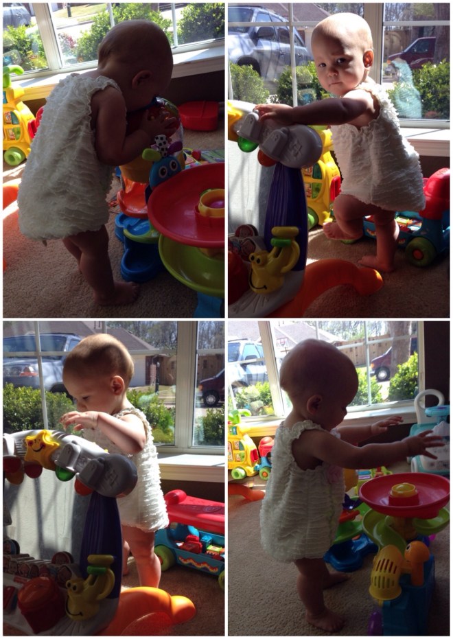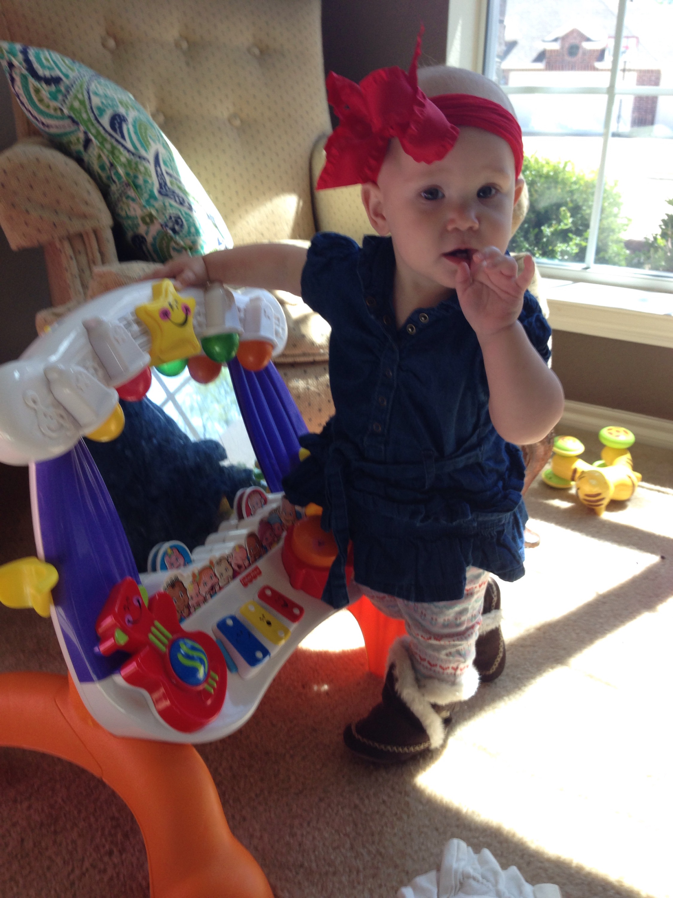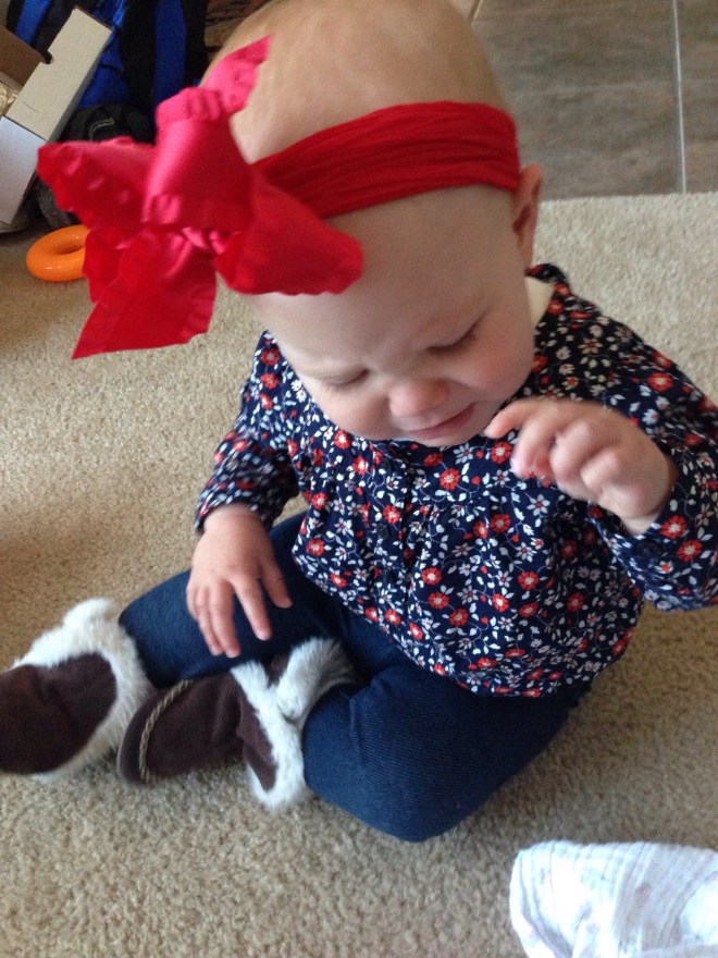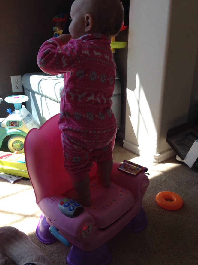 This little peanut cracks me up, I won’t say being sick has not totally knocked her out, but little times here and there she is pulling crazy stunts like this. π³ Her new favorite thing is to be UP on things. And when she gets up on something, she is usaually very proud of herself and claps for herself. (As long as she doesn’t fall.) Such a turkey!
