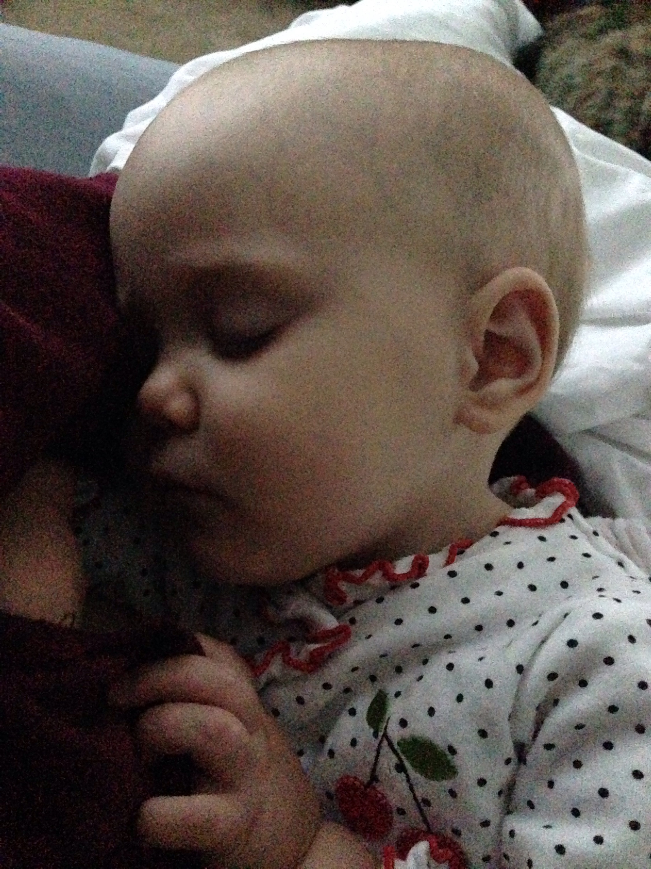 Poor baby girl! I want her happy self back ASAP. When everyone left for church, she slept for over 2 hours. (On me, so I couldn’t move.)