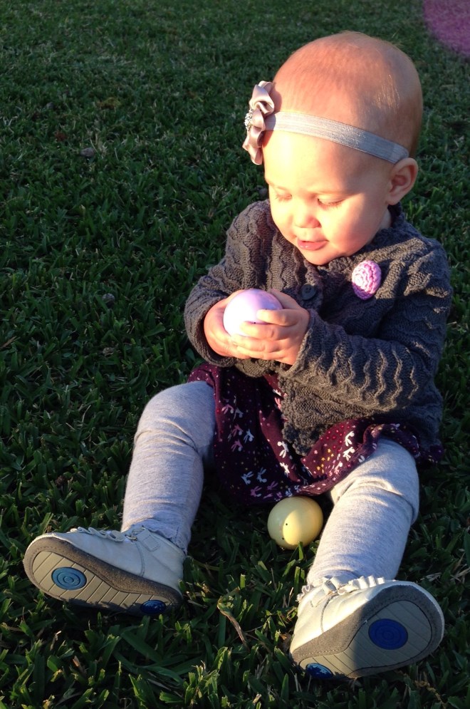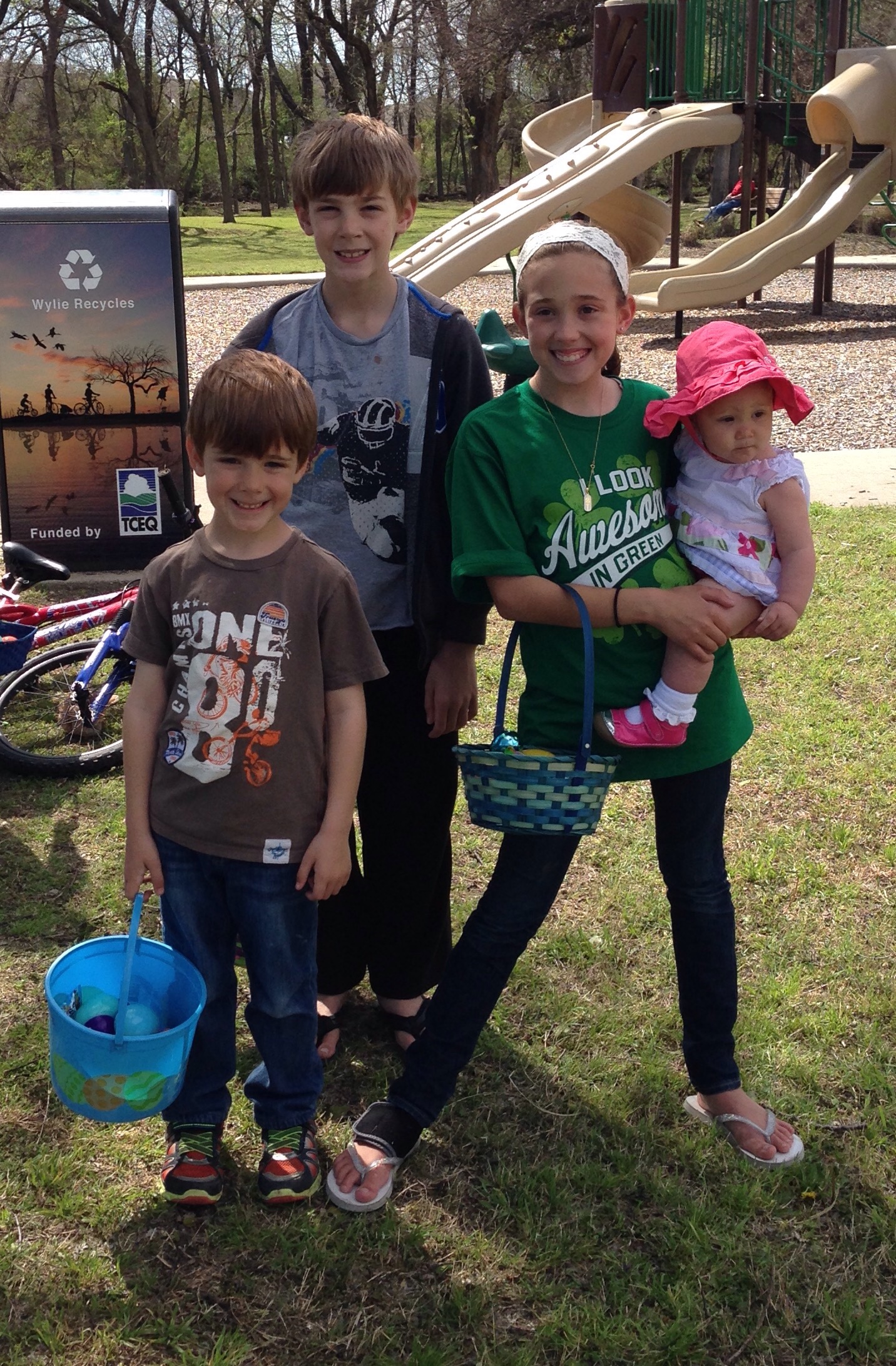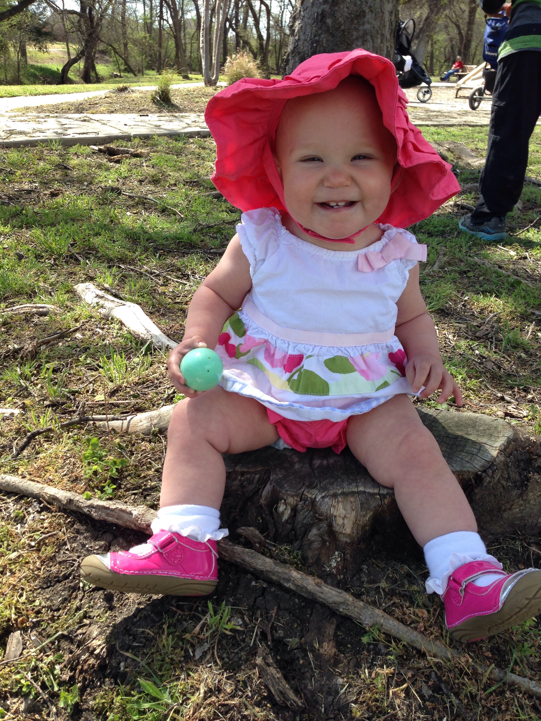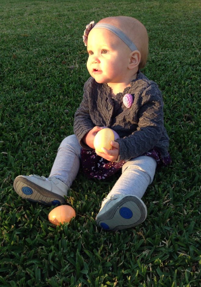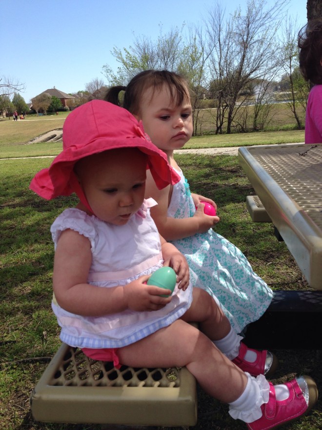 Since we were unable to attend our Easter egg Hunt on Wednesday, and Jaime and I both had to miss the neighborhood hunt last Sunday, we decided to do a small hunt for the kids at our park, with Briana and her kids too. The kids really had fun, and Lucy even smiled for most of it.