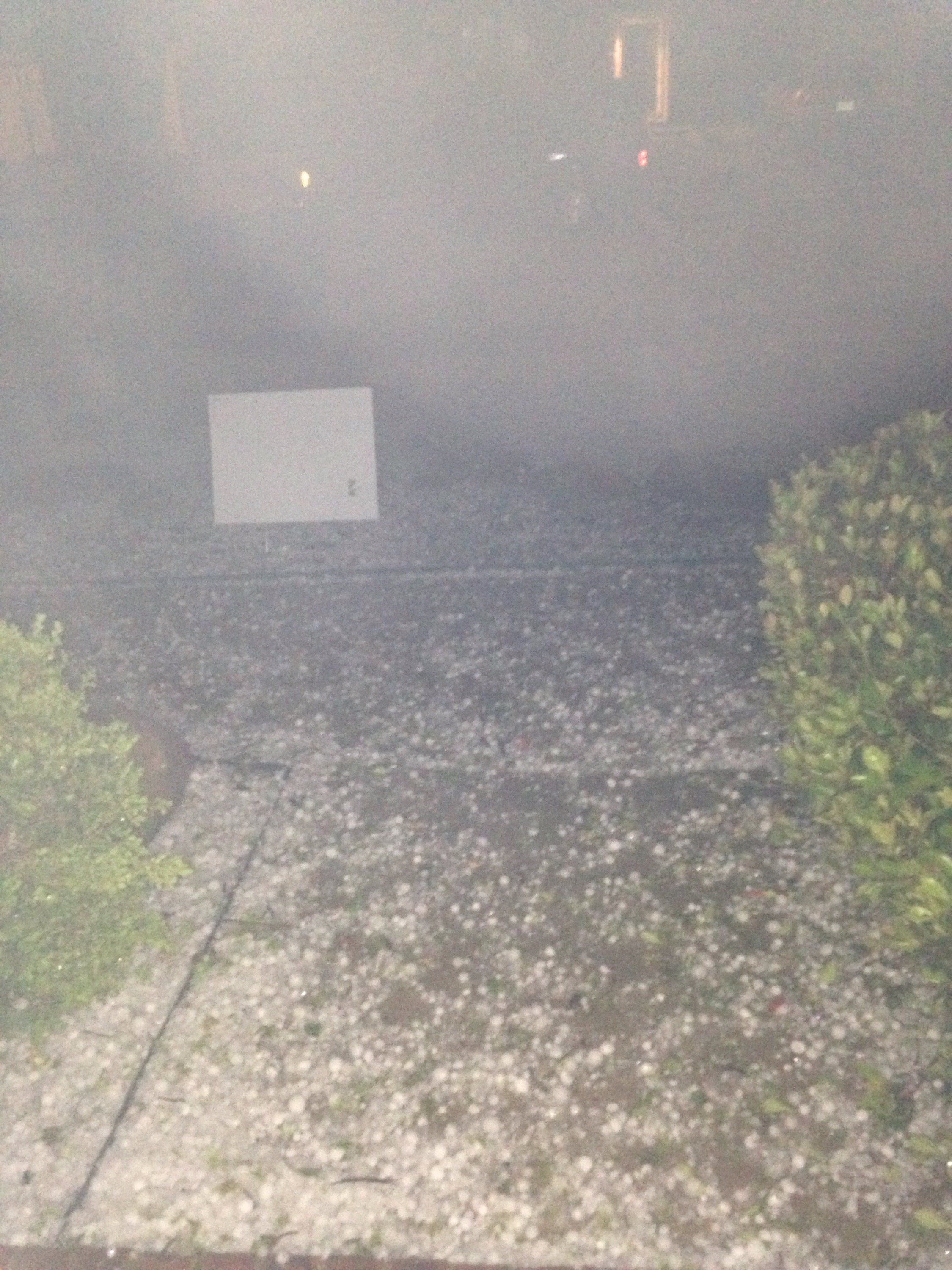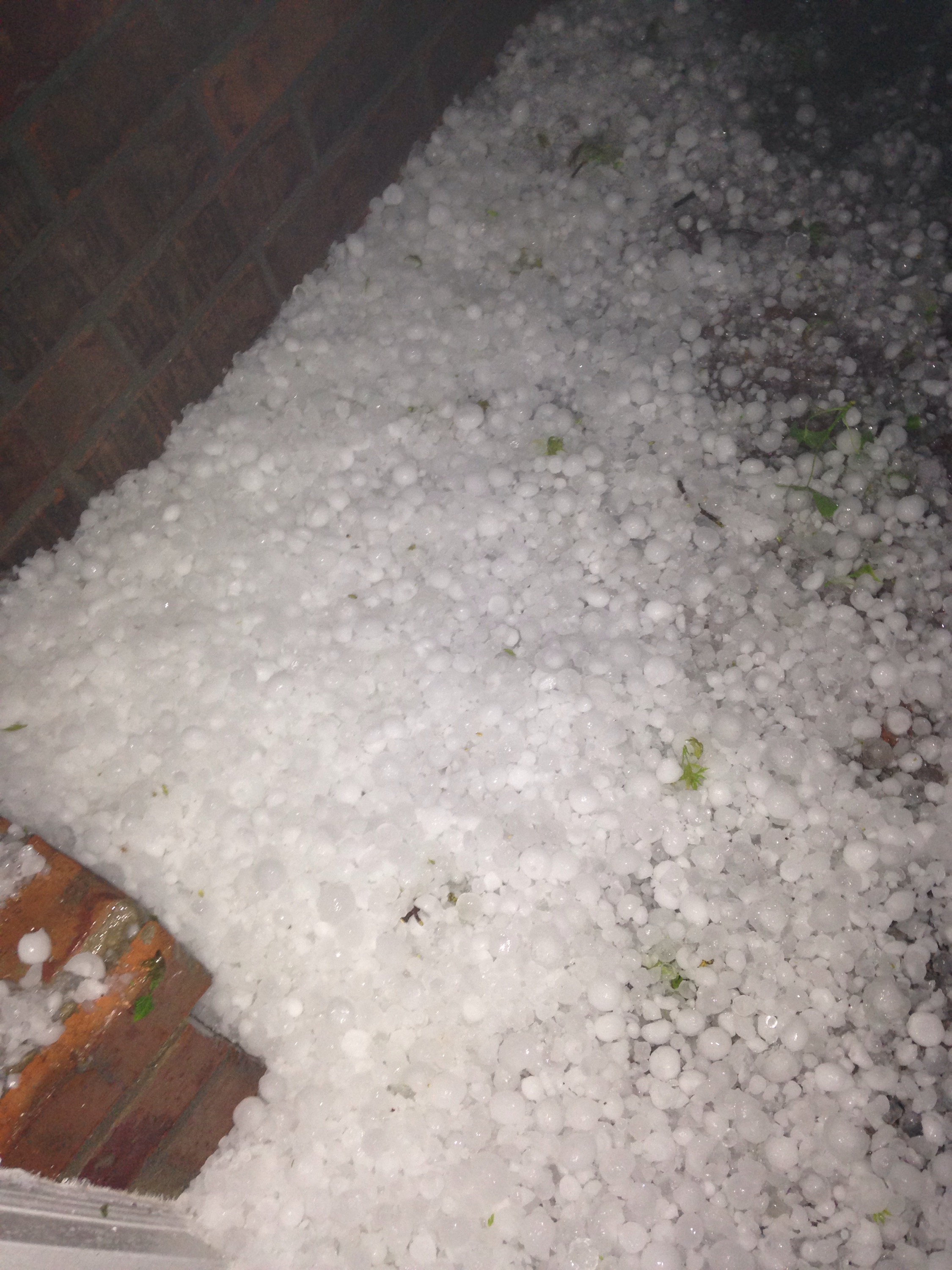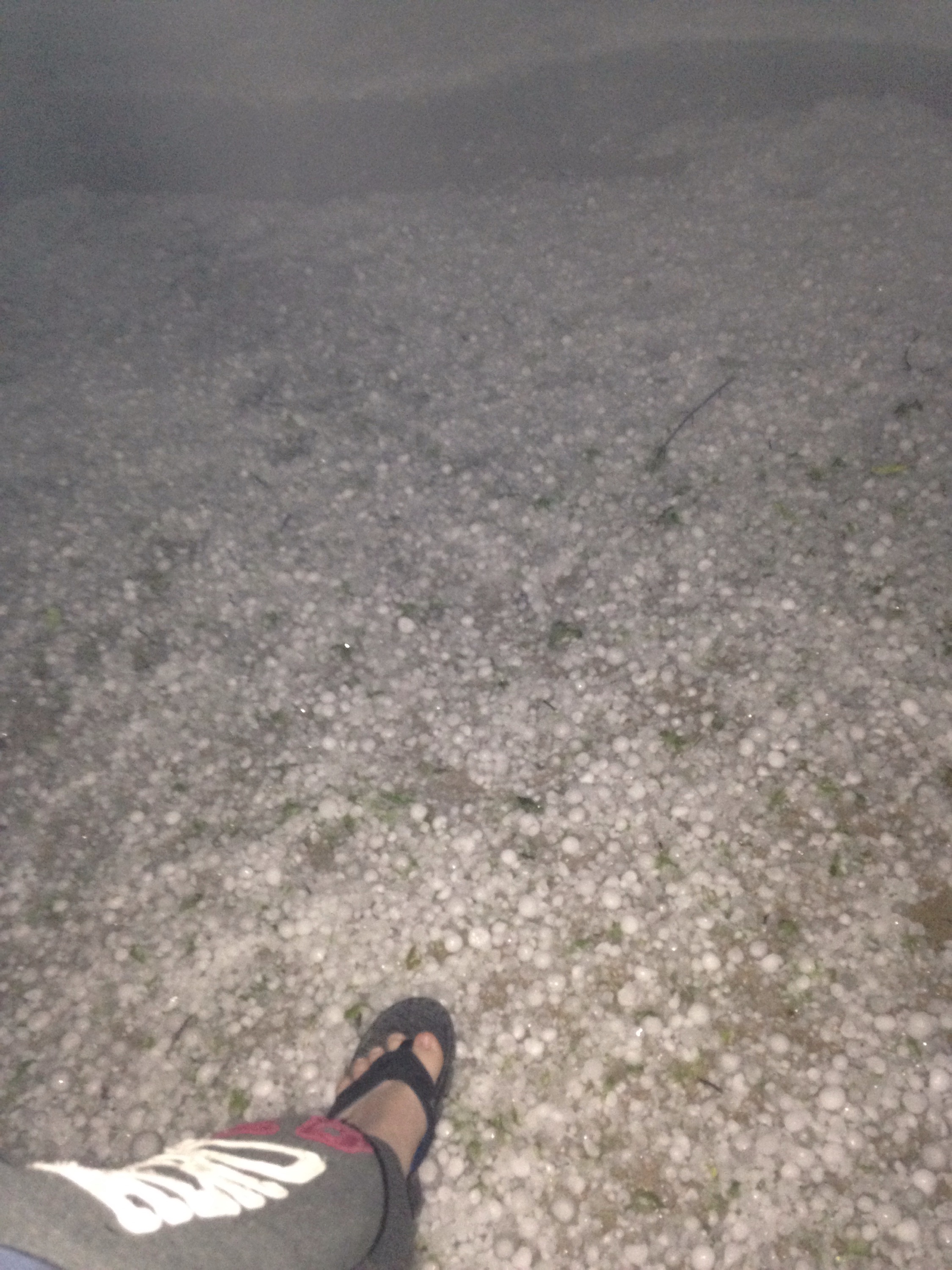 We had to wait until it completely stopped to take pictures, so we missed some of the HUGE hail balls. THAT BY FAR was the worst hailstorm I have ever been through.