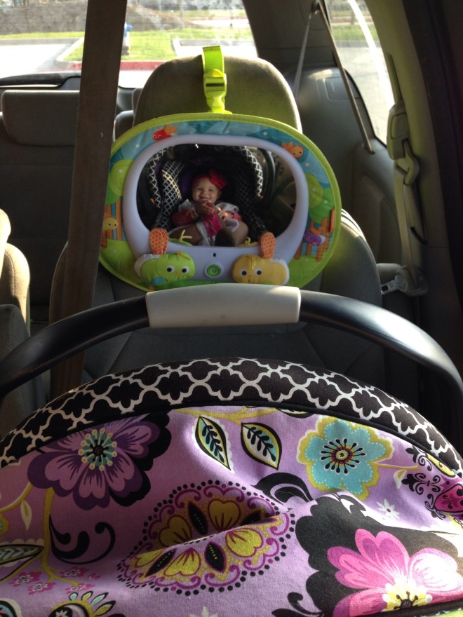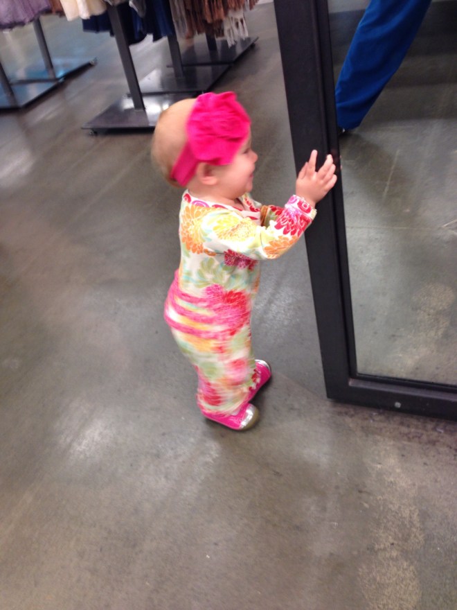 She had to play peek a boo with herself in the mirror at Old Navy…