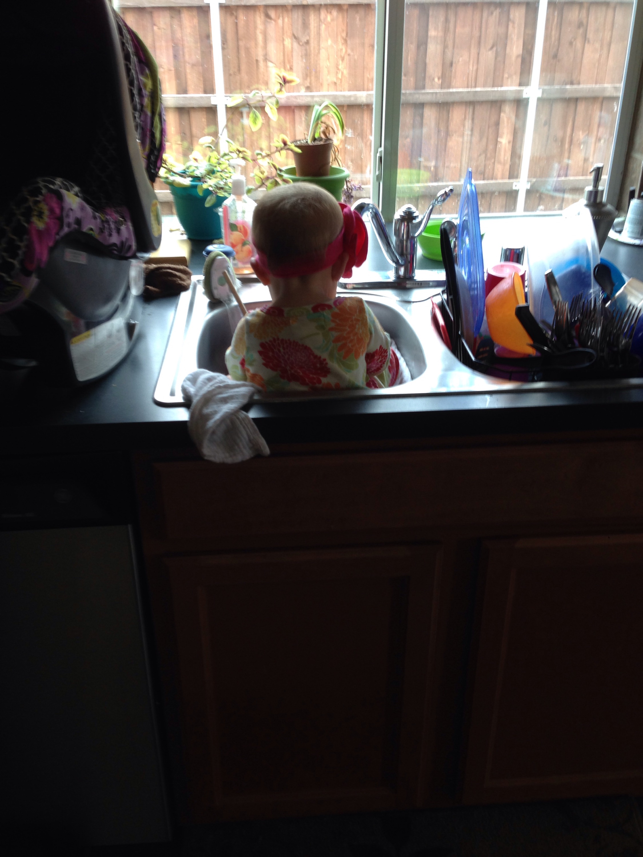 …and play in the sink so I could get her car seat cleaned and the dishes washed before we left. Luckily she wore herself out and fell asleep when it was time to pack the car, drop off the bunnies, and get the kids from school.