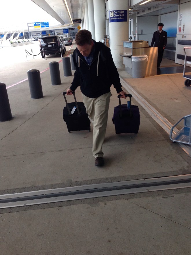 We got Dad picked up and dropped off our luggage curbside. Fortunately for us, the airport agent noticed Sam had left his driver’s license and debit card at the counter before we got too far away.