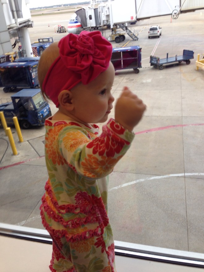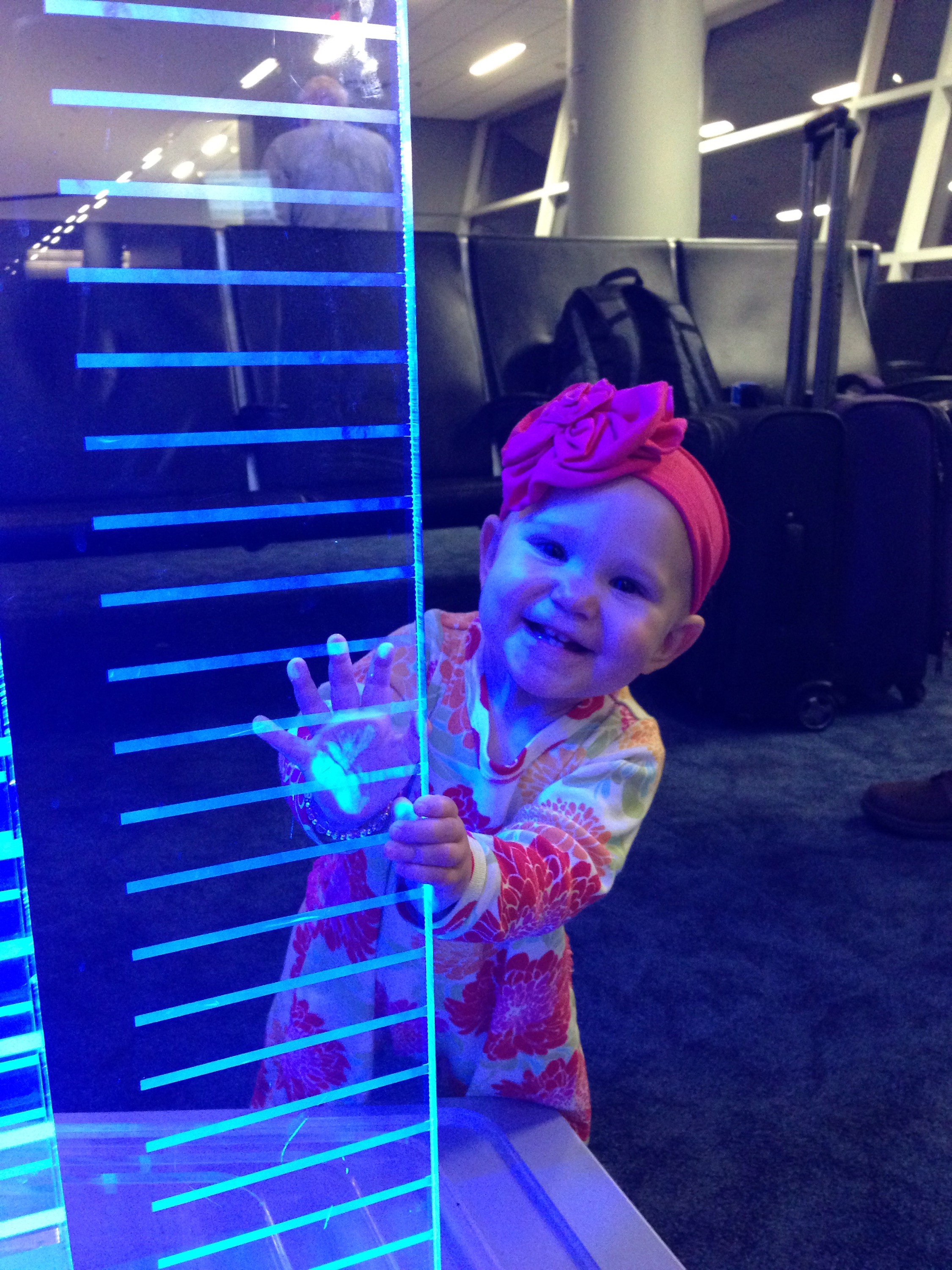 Lucy loved watching all the carts and vehicles travel below the terminal.