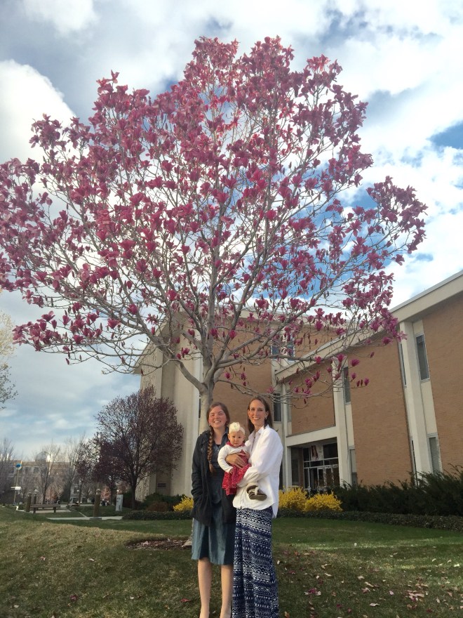 Afterwards, we strolled the walkways of campus with Brie. Lucy loved hanging her head out of my jacket just staring at her sister. It was hilarious because she did it for about 5 minutes straight!