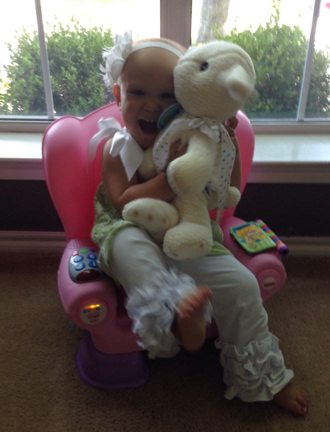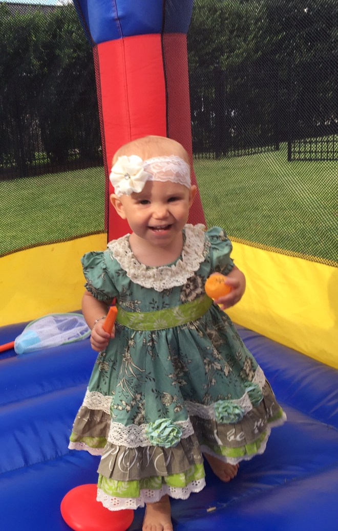 Wow! Time is flying during the summer. It seems like yesterday that we celebrated her first birthday, and now it is 2 months later. Crazy! This little lady is CRAZY too! She is so full of energy. Day & NIGHT! Even though I am pretty exhausted most of the time right now, I wouldn’t change her adorable smiles and giggles, her out of the blue hugs, or her silly peek-a-boo moments with random goofy objects for anything!