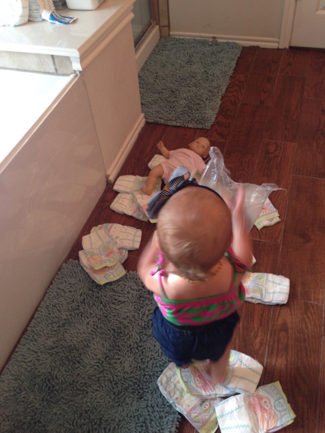 We are a little concerned with Lucy’s growth. She does not eat very well at all. We are trying to allow her to be independent, since that is her preference, but most of the time the food doesn’t even go in her mouth. Clothes that once were tight, are loose, as well as the diapers she was outgrowing. We will be going back to the doctor again this week to check her weight and growth again. We are hoping this does not bring us back to the GIs we have had to visit with the other kids.