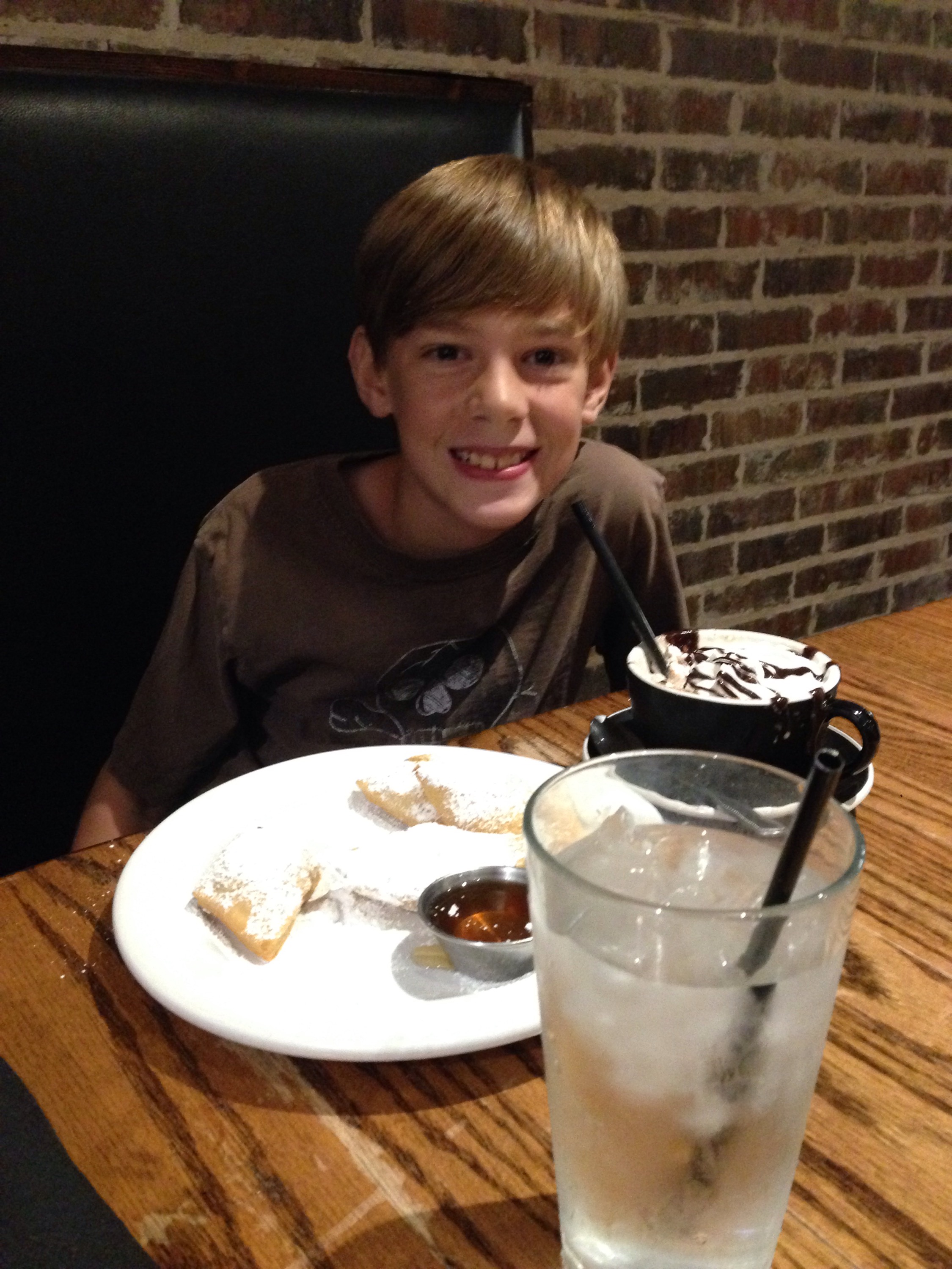 Tonight I took William out for beignets and hot chocolate to a place called The Coffee House Cafe. I was hoping so much that they would be fabulous. They actually were pretty bad. And so was their hot chocolate. 😔 I guess I probably shouldn’t have had such high hopes. This is Texas! We are known for BBQ! At least my time with William was fabulous and he liked what he got. I LOVE this boy so much!