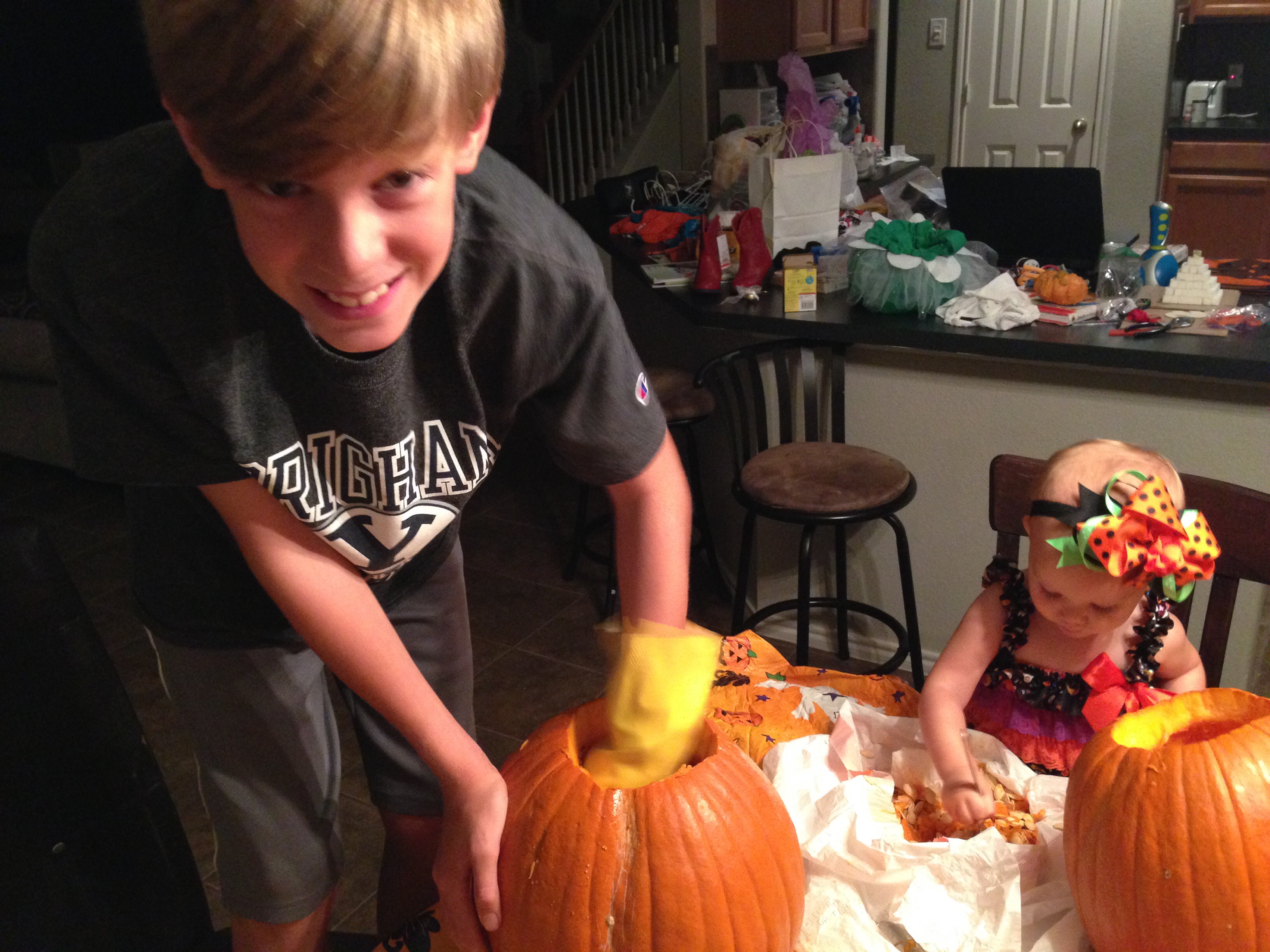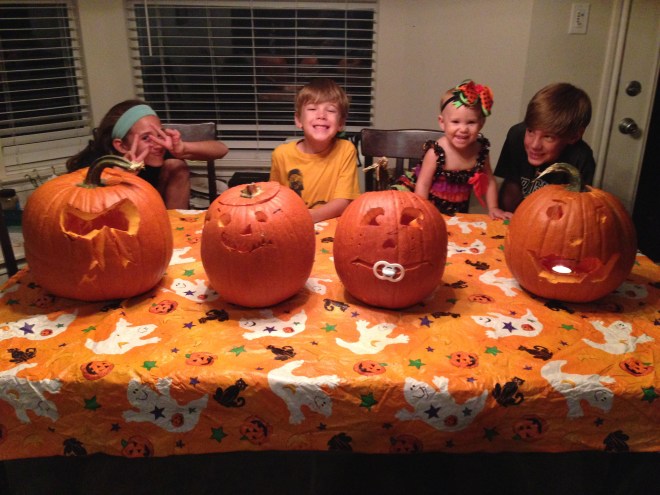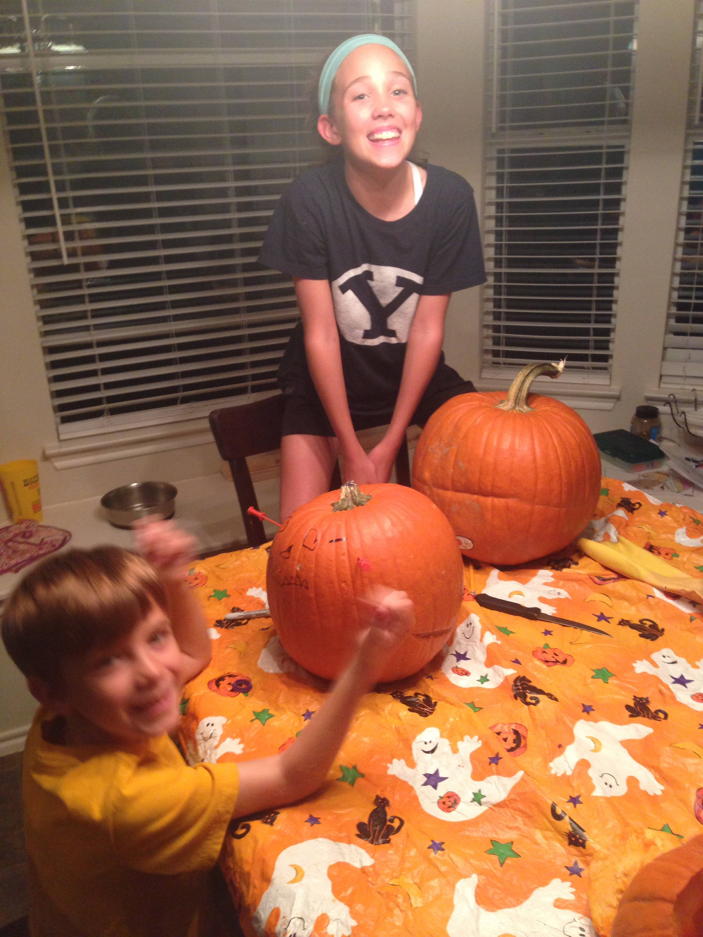 Today, we were actually able to carve our pumpkins! We have been meaning to, but have been side tracked with other things. The kids did a fabulous job. Other than breaking a few knives, it was wonderful. Even Lucy thoroughly enjoyed herself.😊