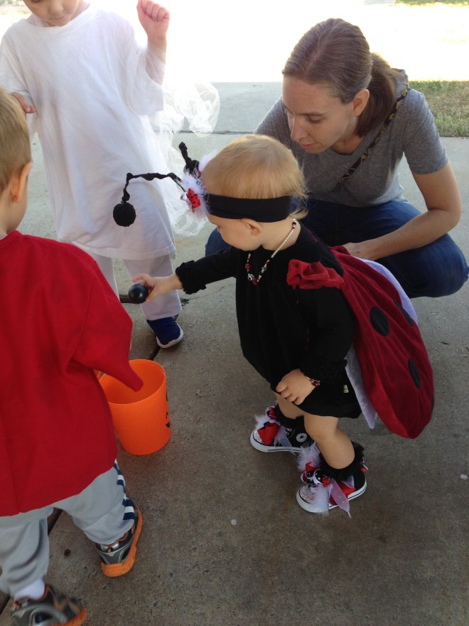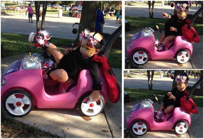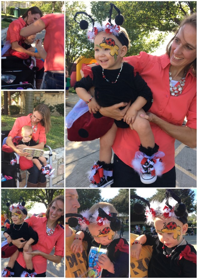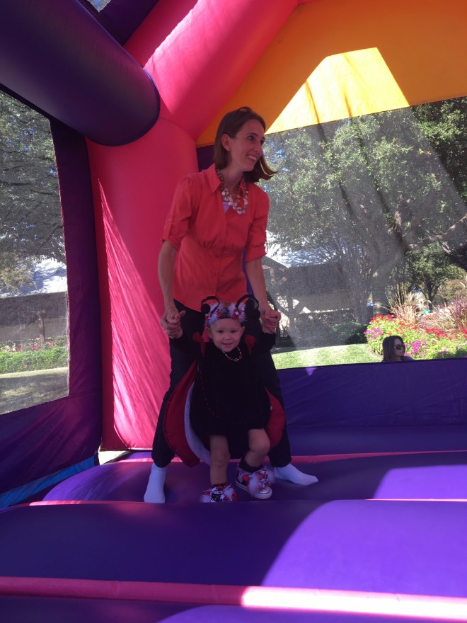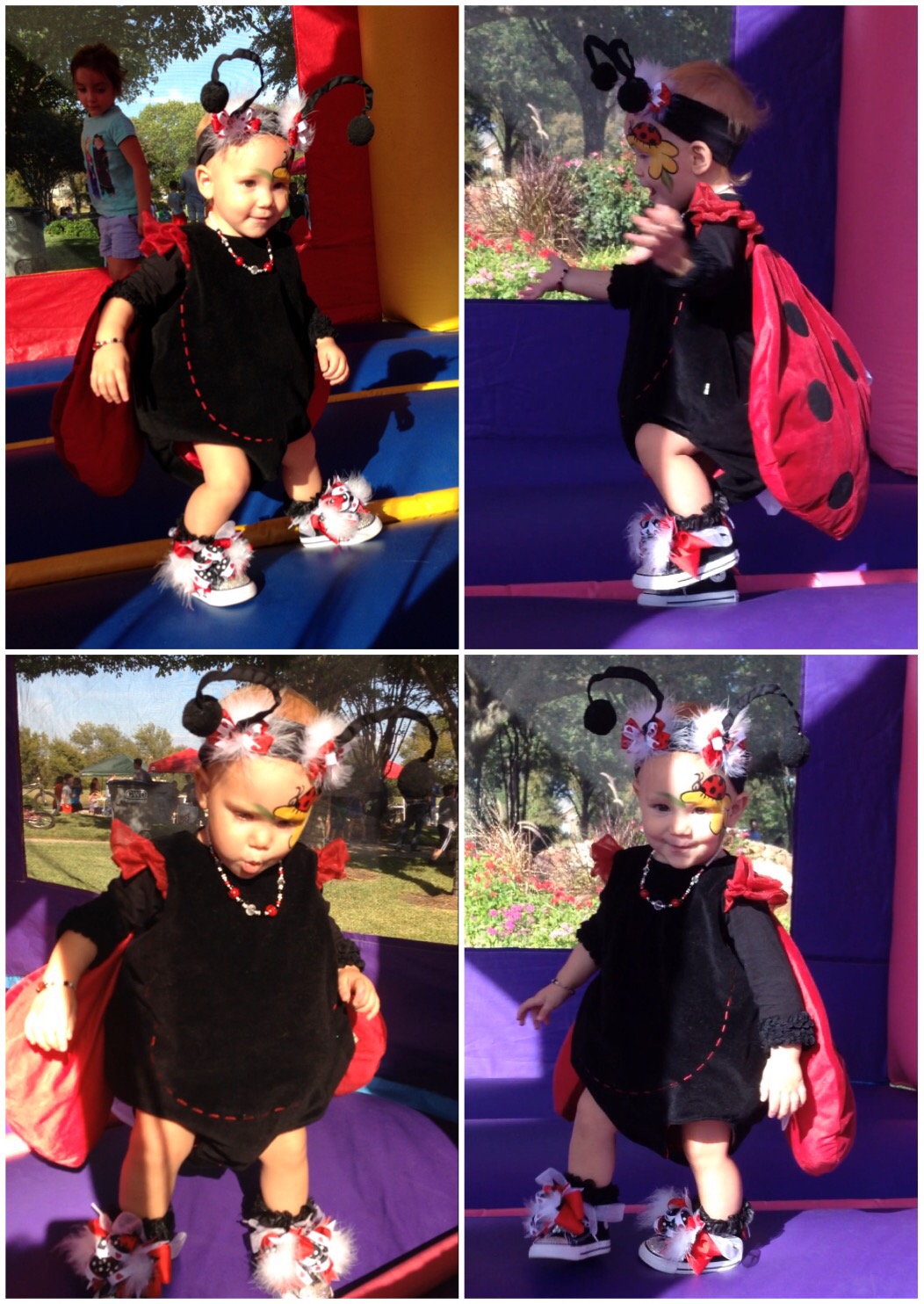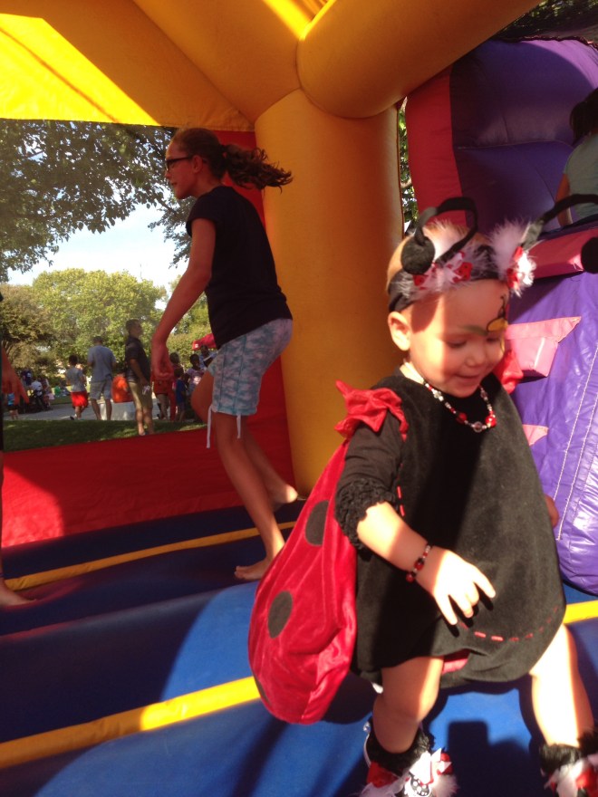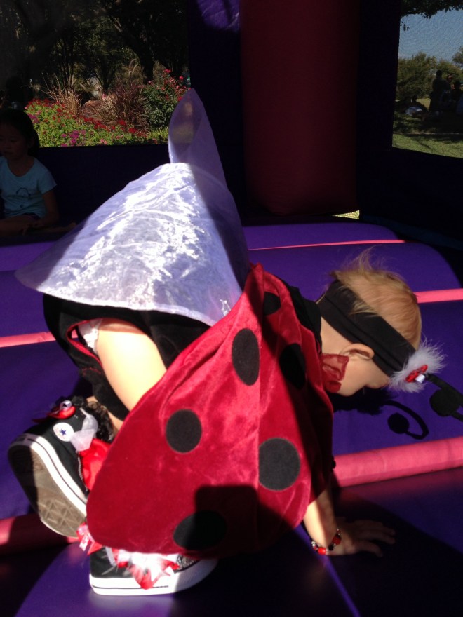 Lucy loved the bounce houses and had to try out every one. However, it is a pretty challenging feat just to walk normally as a ladybug. I think she was down, more than she was up.