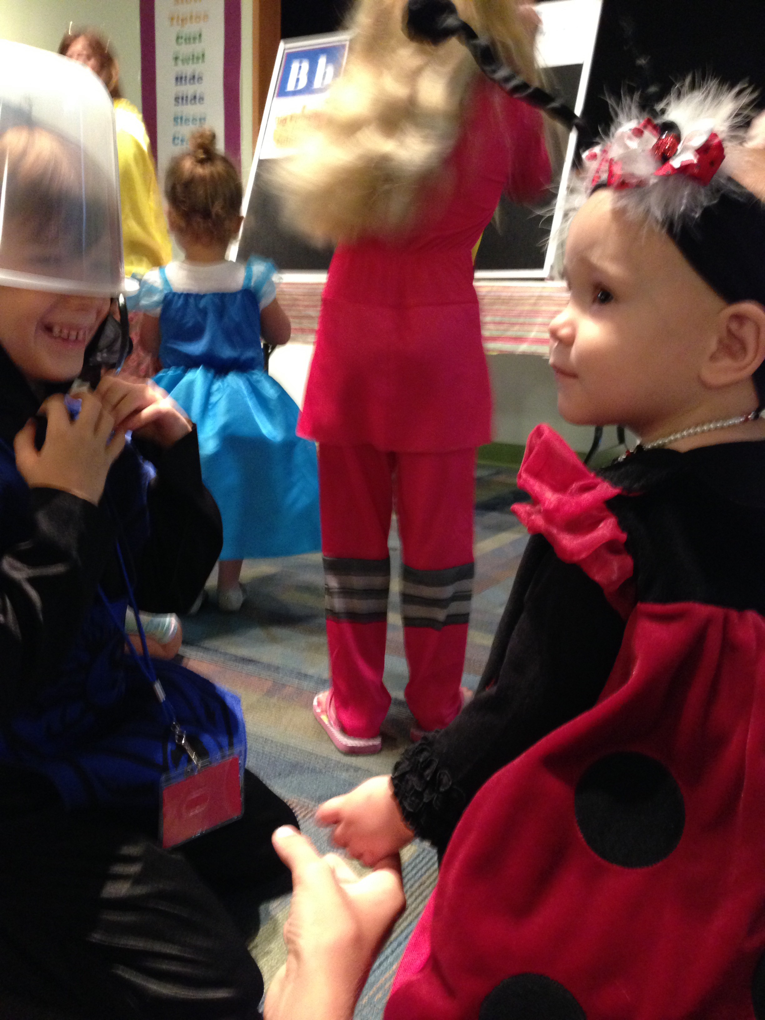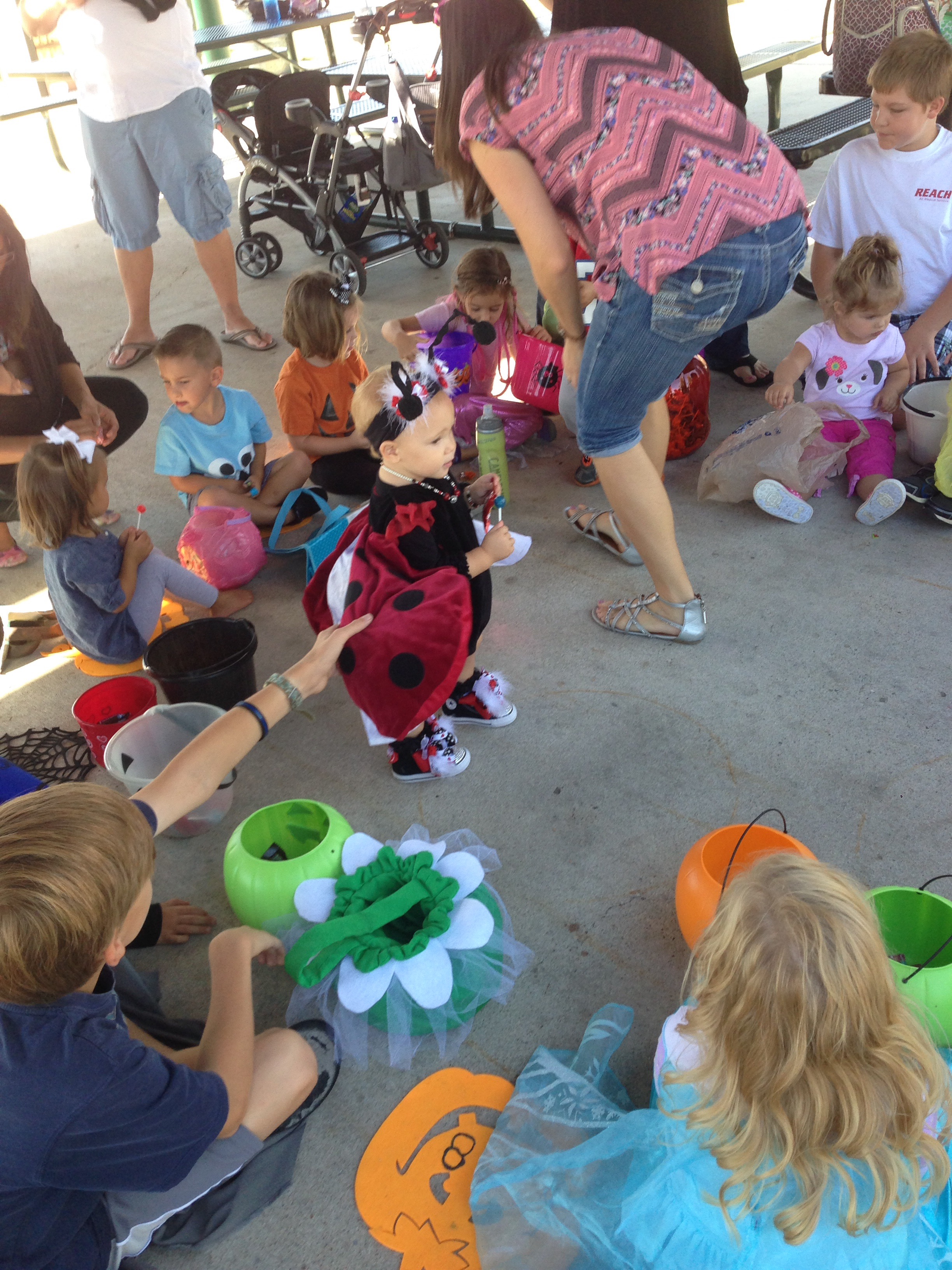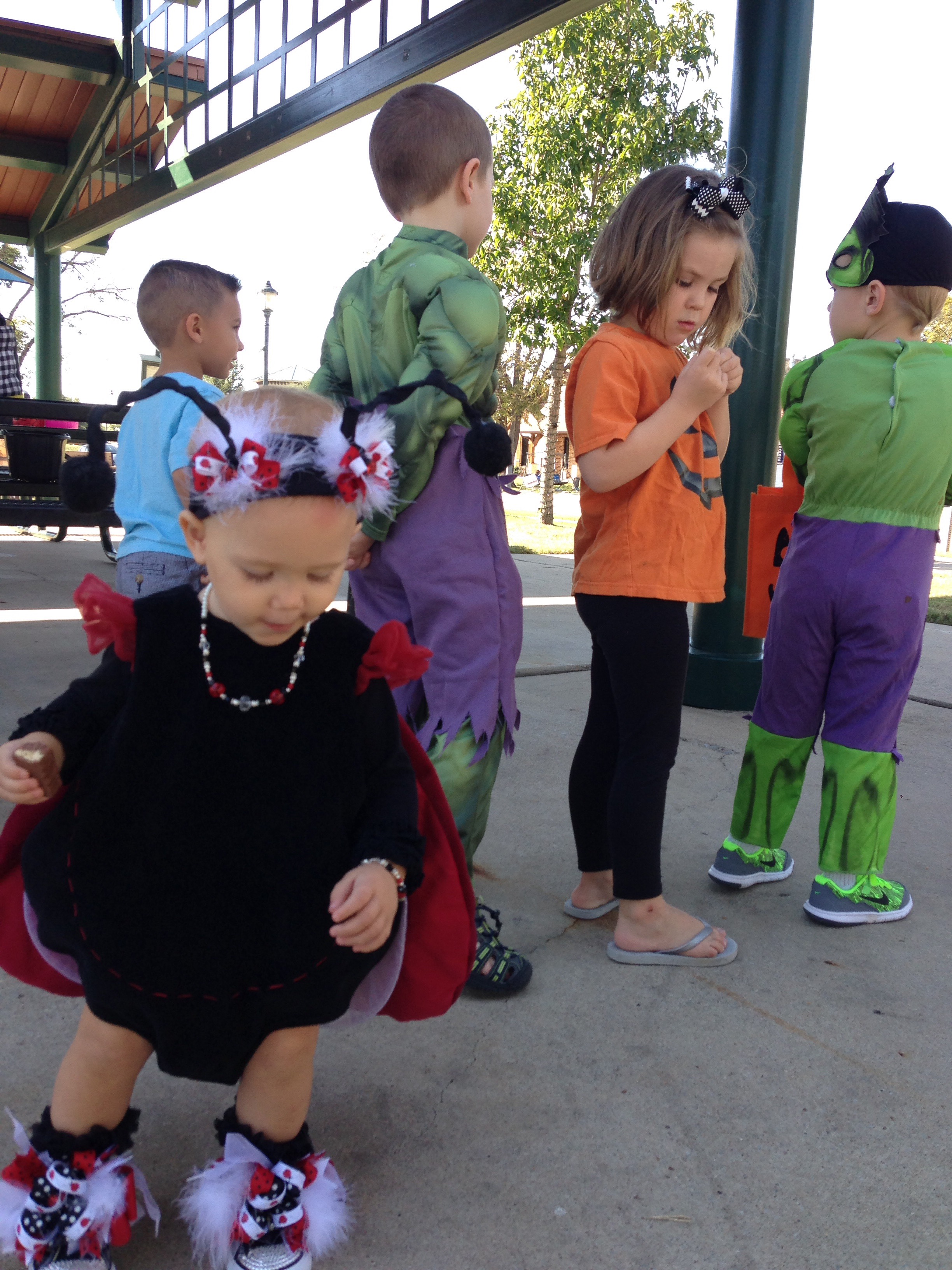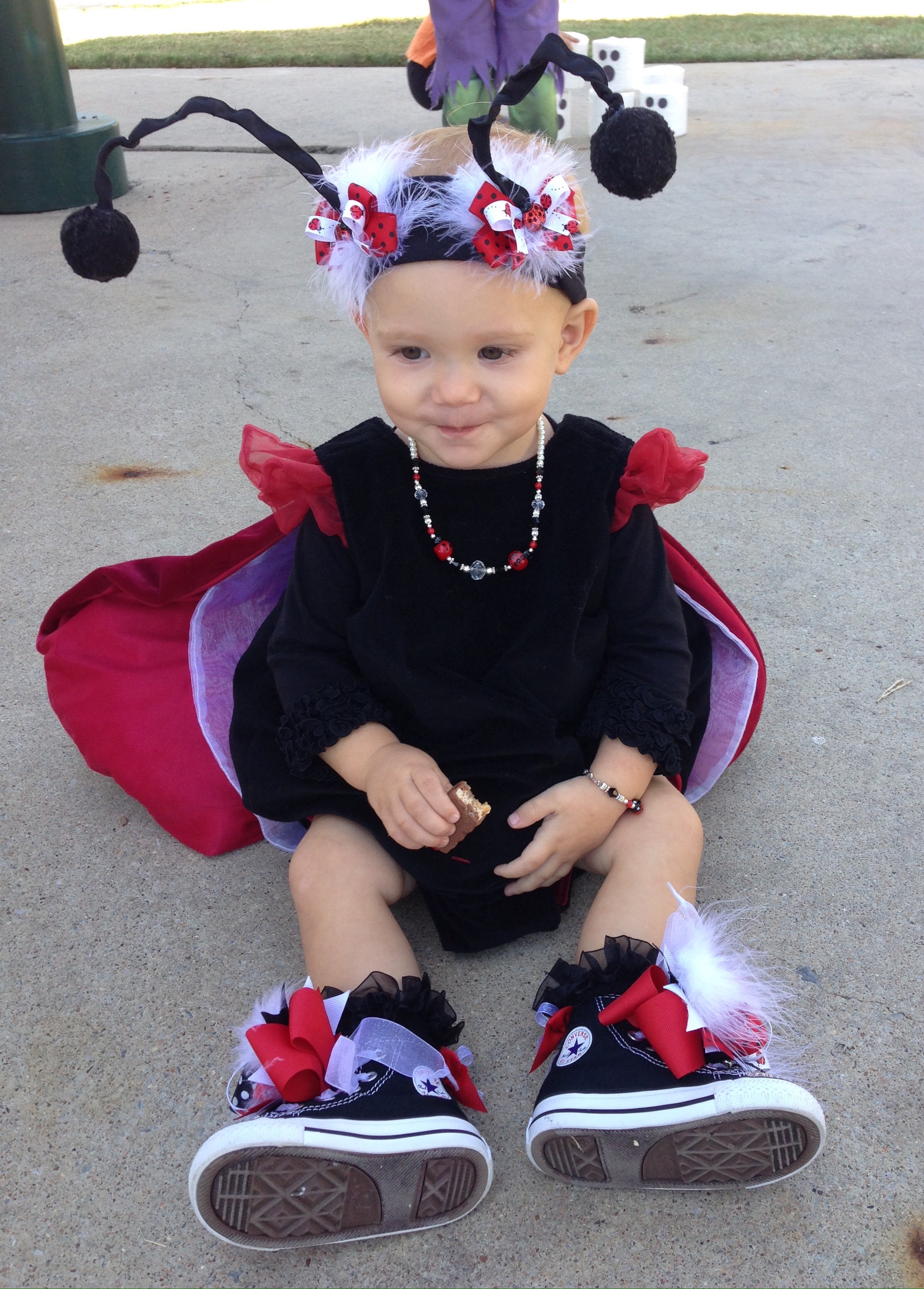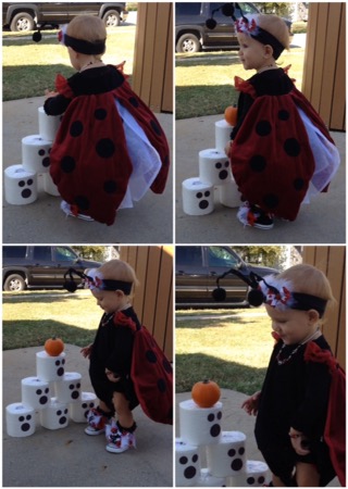Lucy loved the bounce houses and had to try out every one. However, it is a pretty challenging feat just to walk normally as a ladybug. I think she was down, more than she was up.