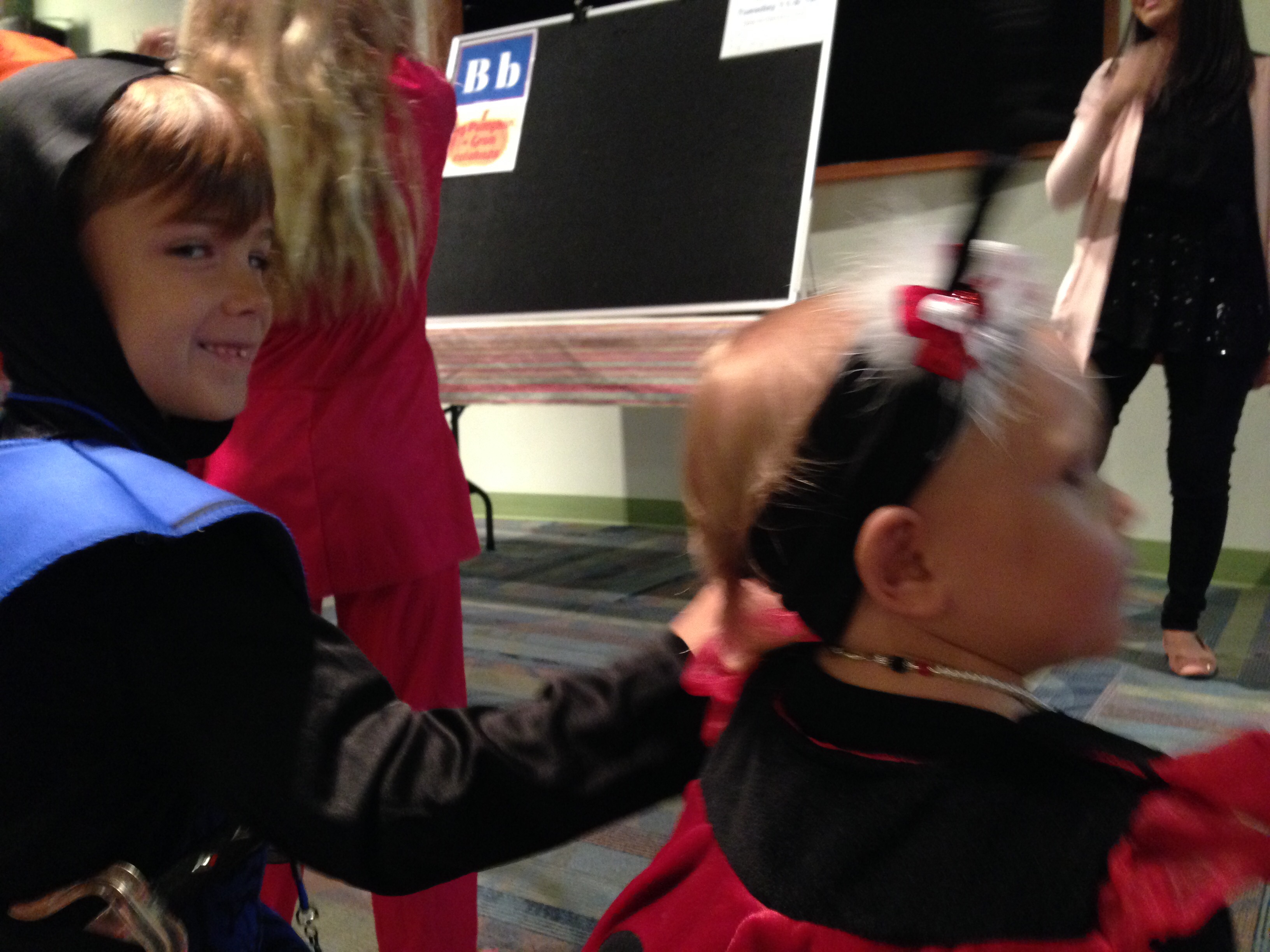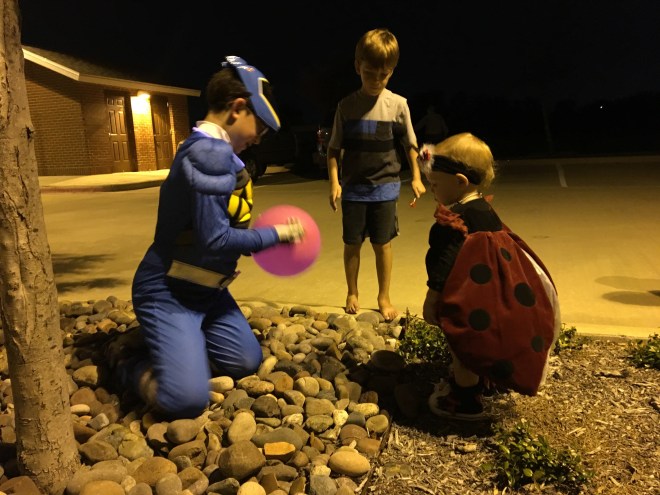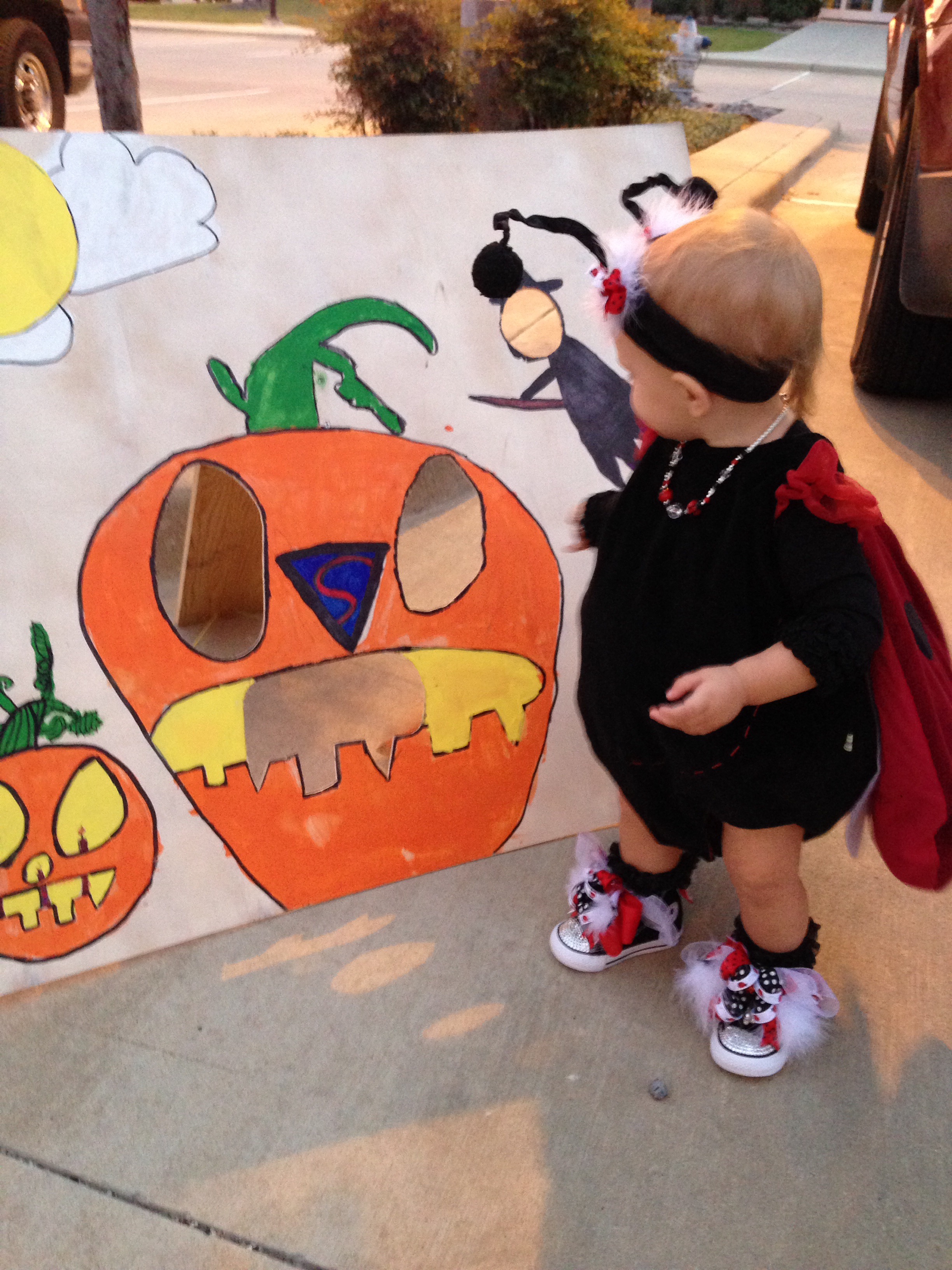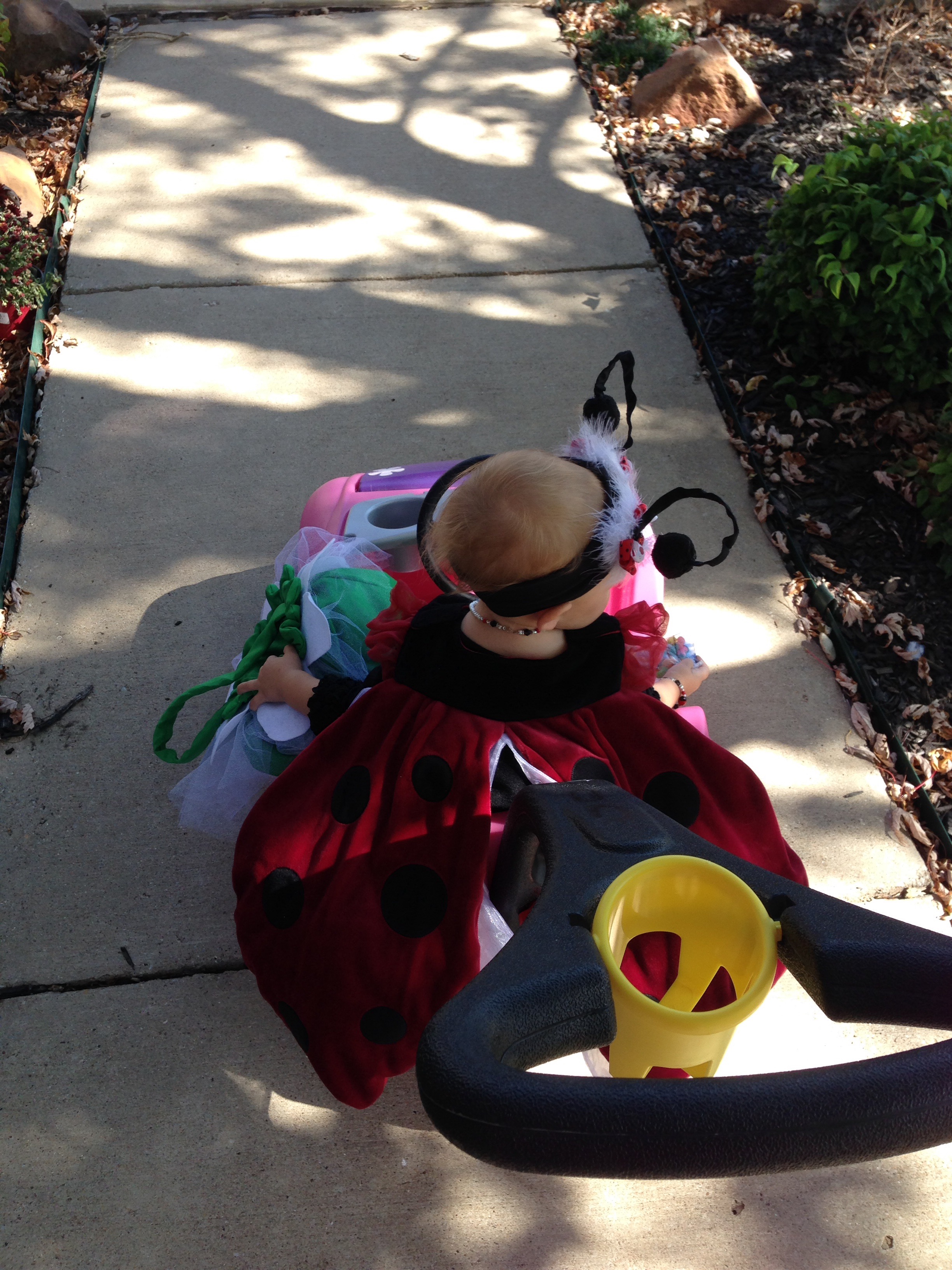 Lucy loved the bounce houses and had to try out every one. However, it is a pretty challenging feat just to walk normally as a ladybug. I think she was down, more than she was up.