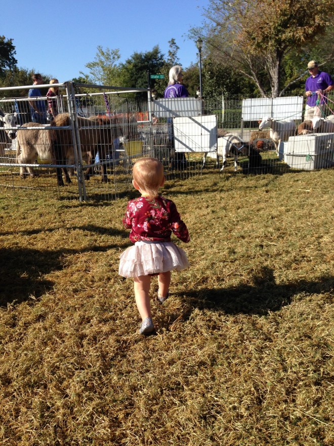 She really wanted to see the animals most of all! As soon as they finally opened the pen, there was no holding her back.