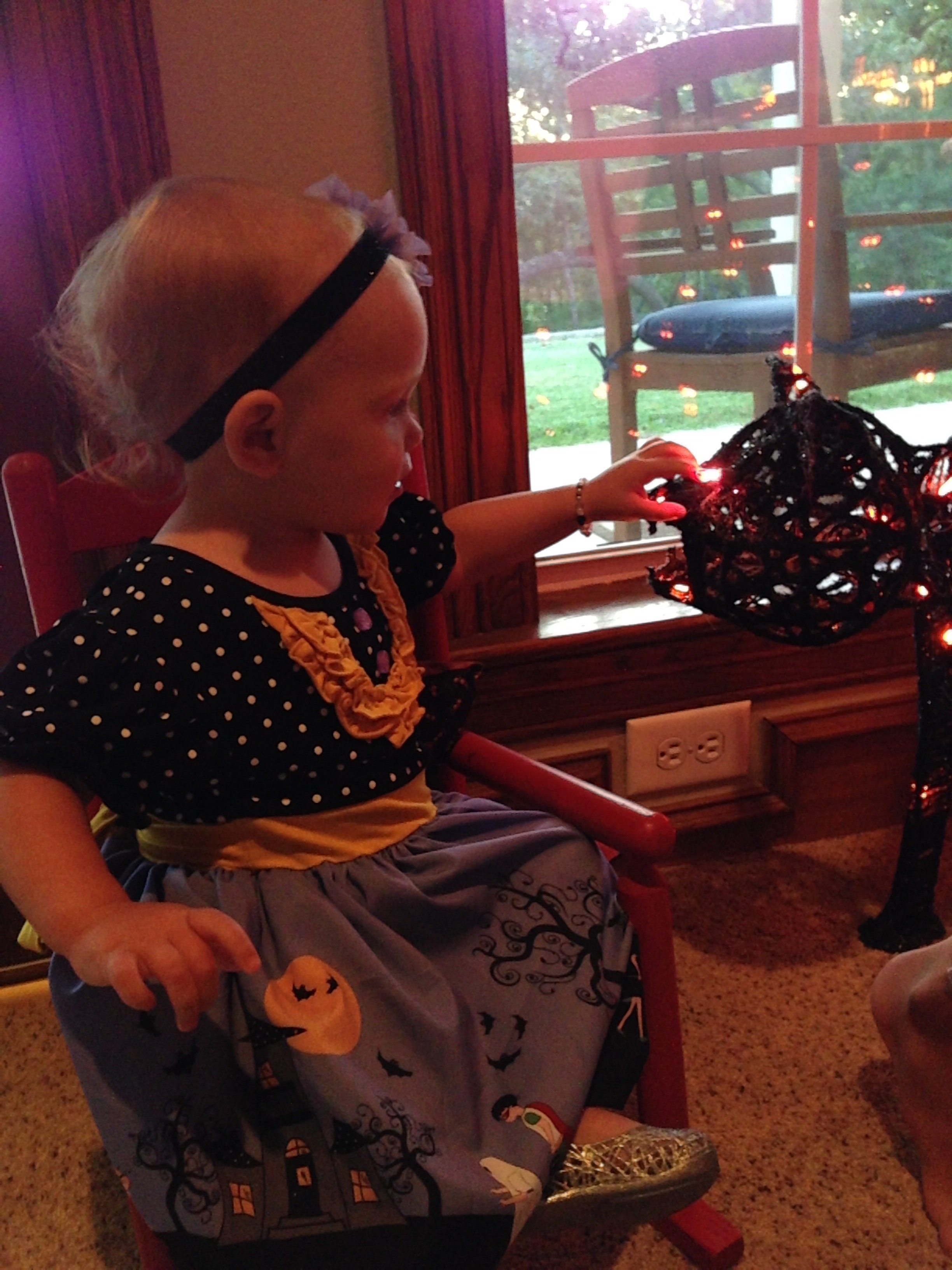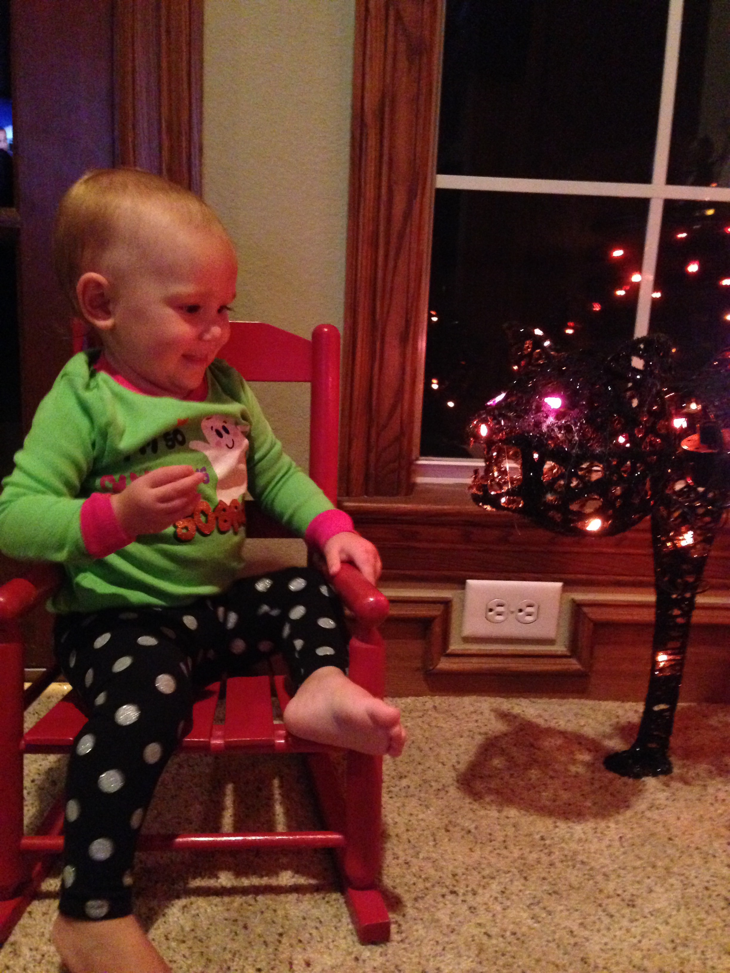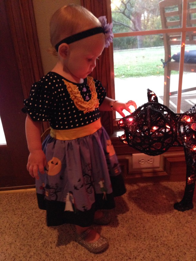 When Lucy woke up from her nap, she got on her special Halloween jammies, in time to play with the cat a tad bit more, before it was time to head home for the night.