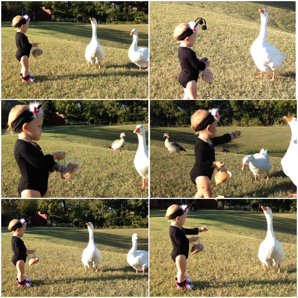 Lucy and I fed the geese while they did. I think Lucy ate more bread than she gave.
