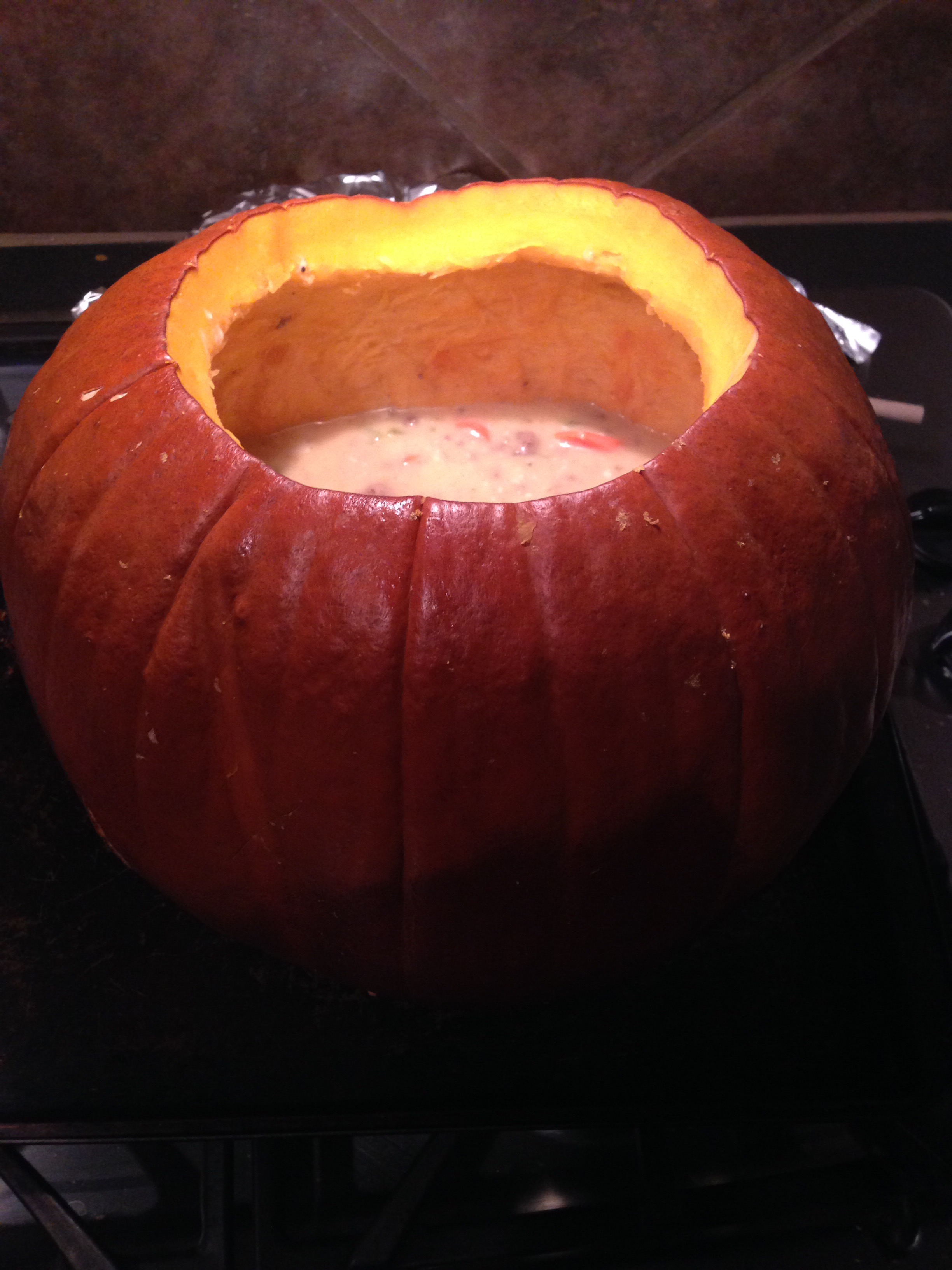 We cooked our dinner in a pumpkin, which I have always wanted to try. It was FABULOUS!