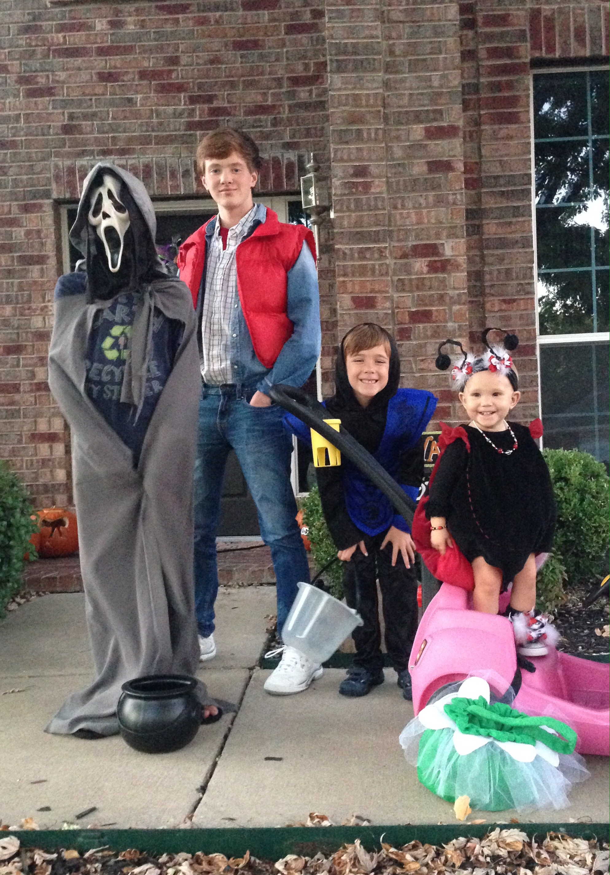 William has decided that it is more enjoyable for him to create his own costume, than to buy one. Sure makes it easy on me. π So we had a zombie, a ninja, a ladybug, Marty McFly, and a lost BYU cheerleader. (We caught up with her later.)