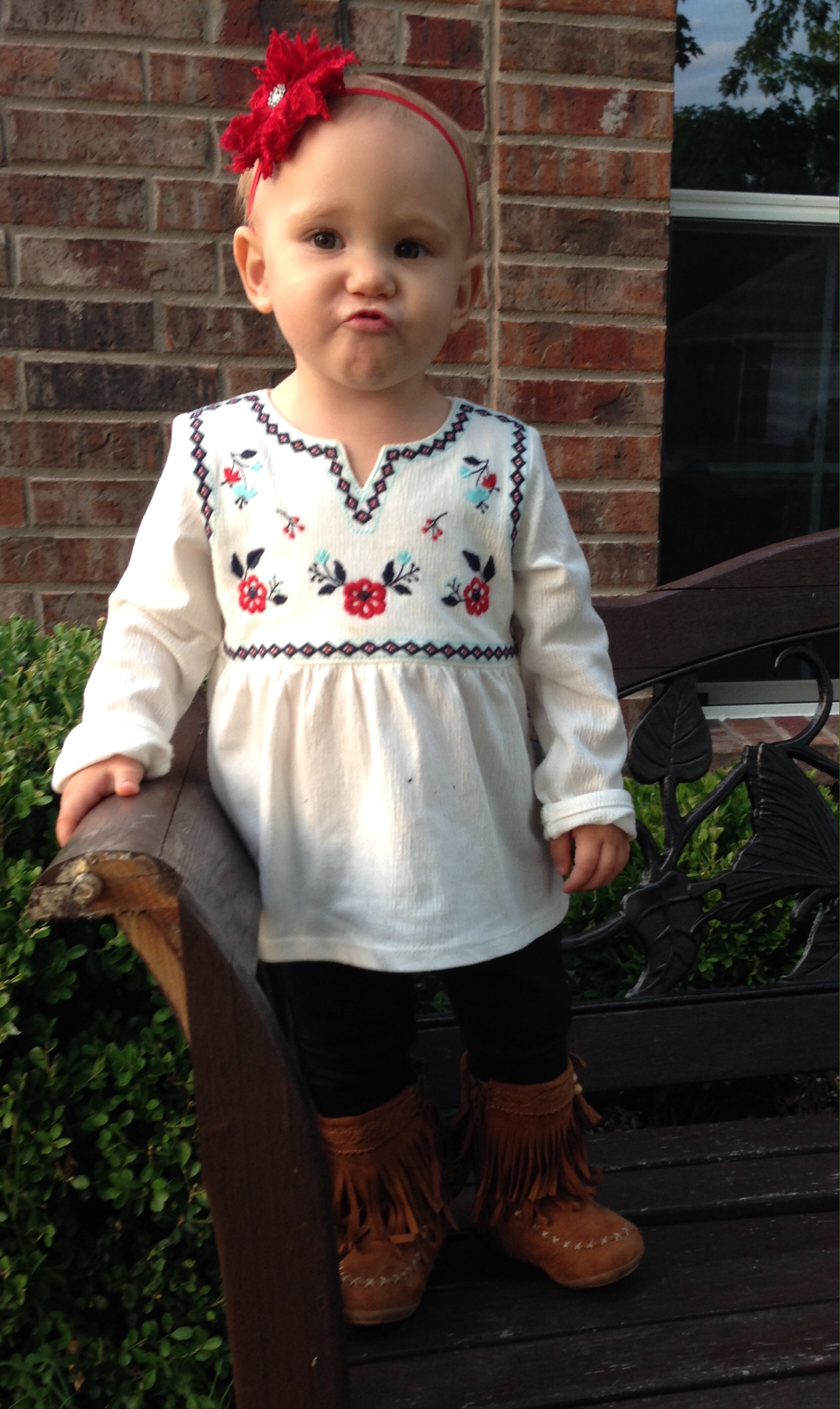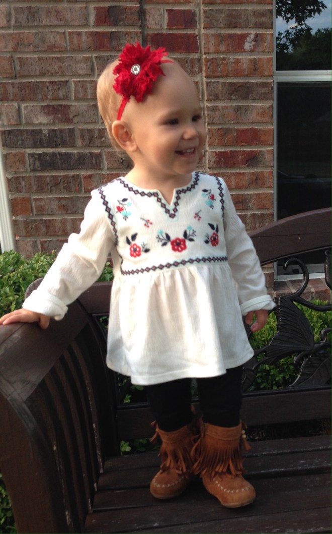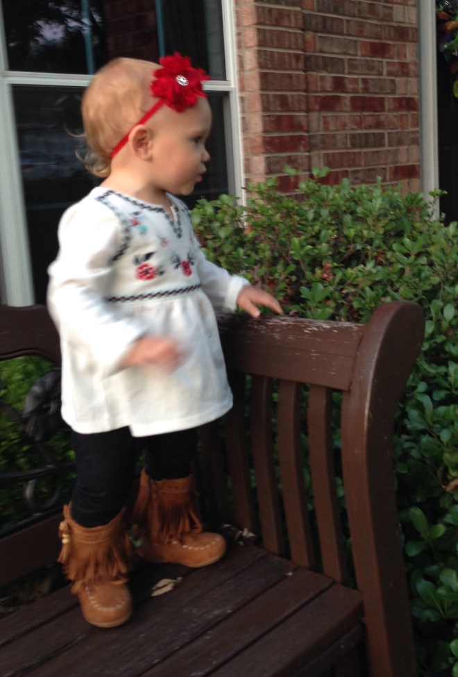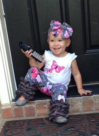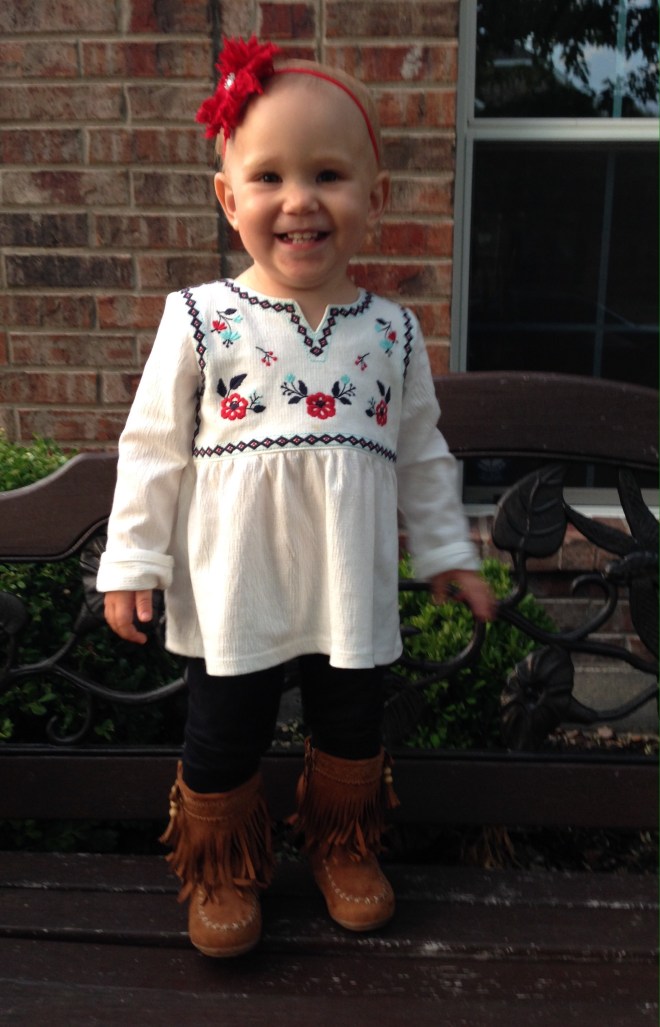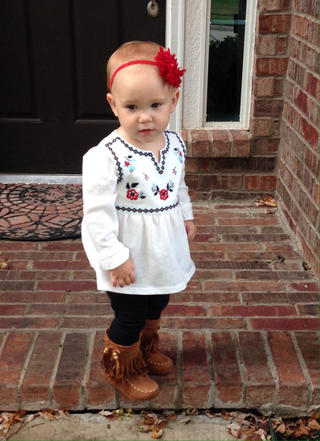 Today we woke up to cool glory! Maybe fall is actually going to happen after all! I LOVE being cuddled in warm snuggly jammies, instead of baking in a sauna every day. I was actually able to put Lucy in one of her new fall outfits today, and I think it is one of my favorites!