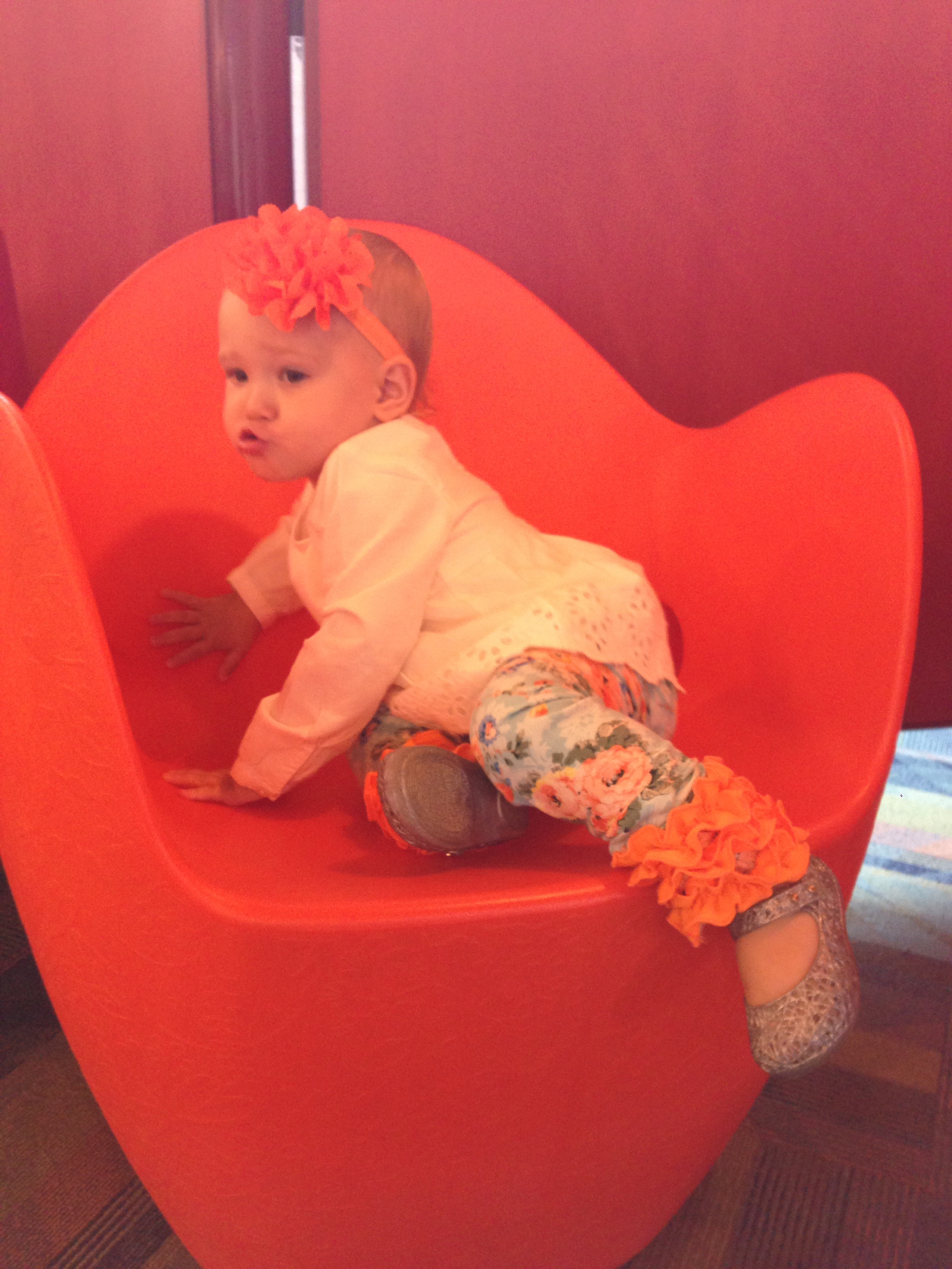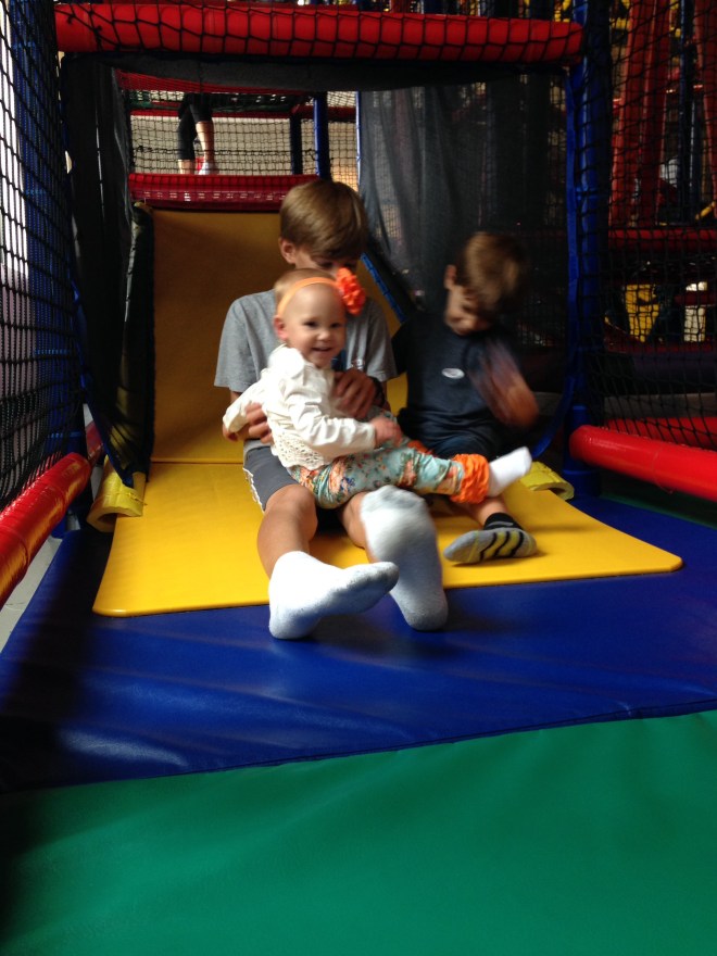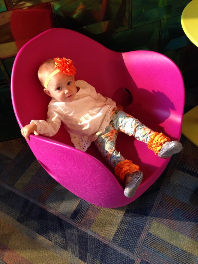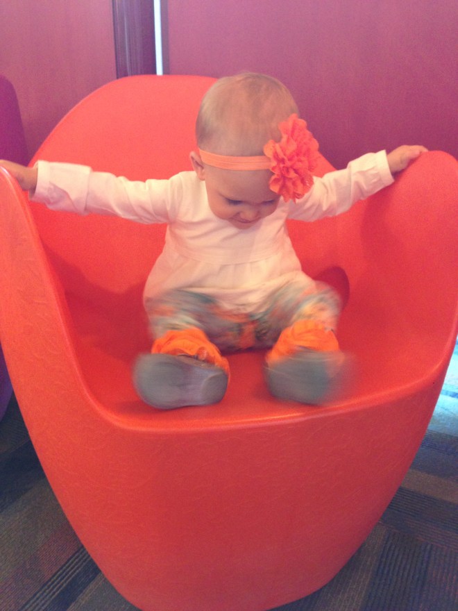 This morning, we went to our usual early storytime because the boys wanted to go to Kid Mania for our Friday trip. Lucy enjoyed jumping among her pink and orange chairs after it was over, which is now driving the boys crazy. They are so ready to leave the library when Lucy and I come out, they dread when she goes running towards them.