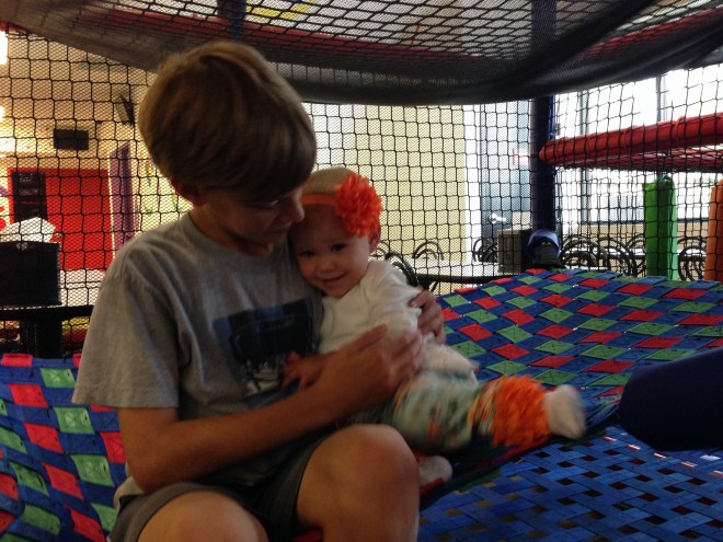 By the time we made it to Kid Mania, Lucy was out. She actually slept for an hour and a half on my lap while Alex and William played.