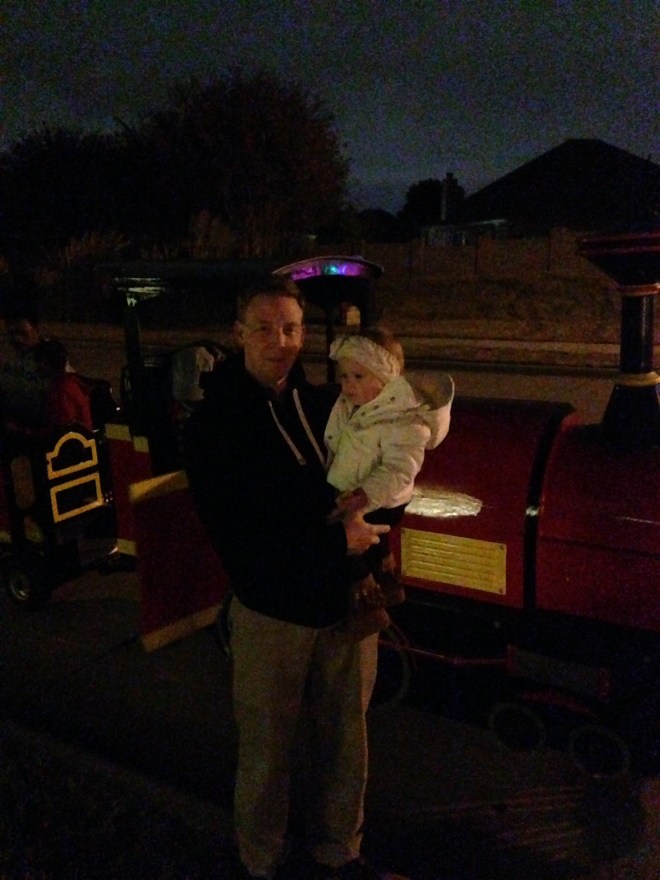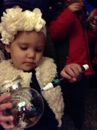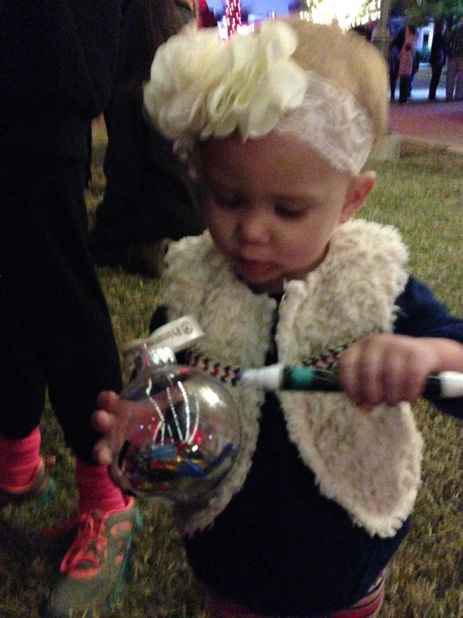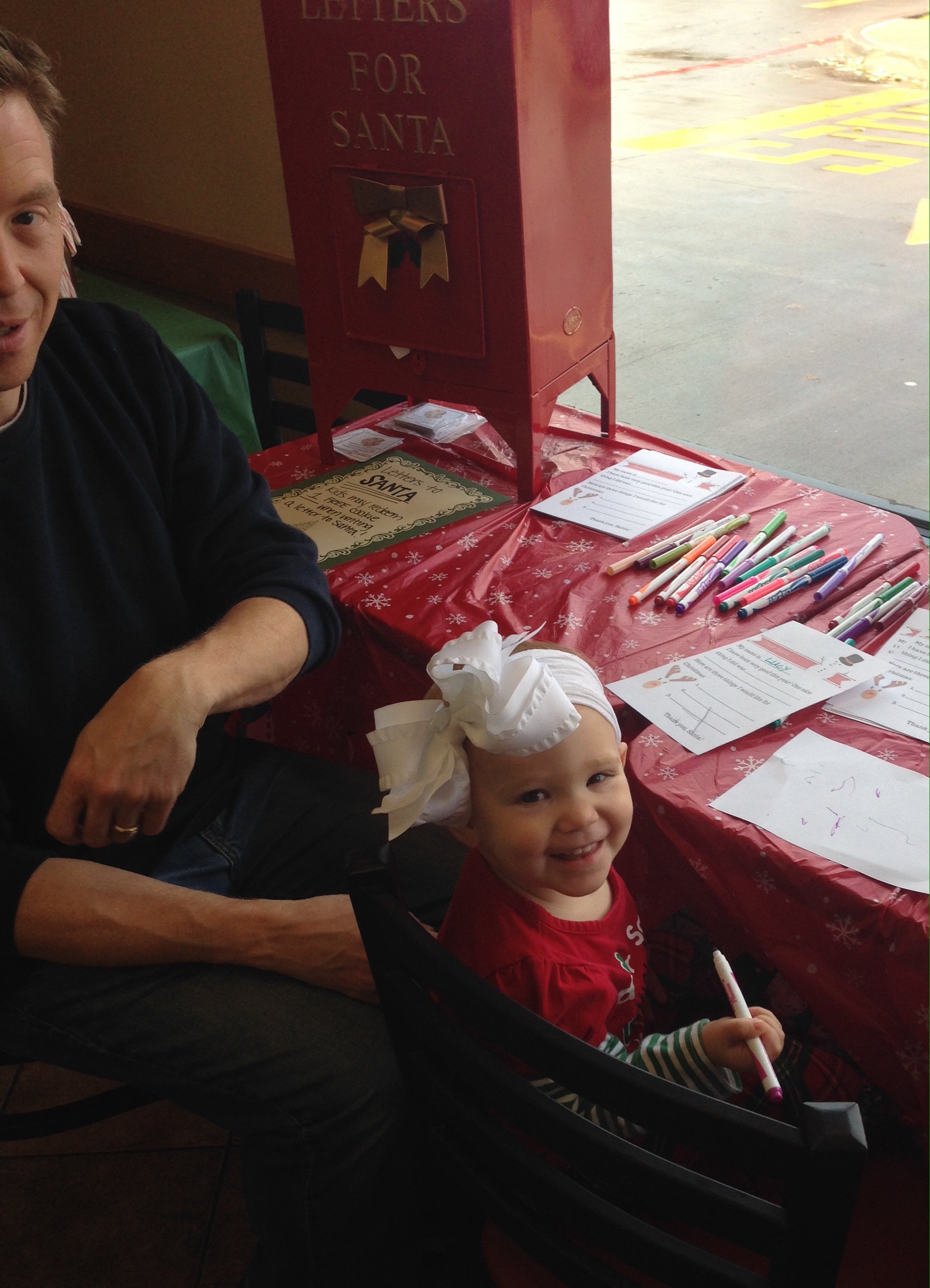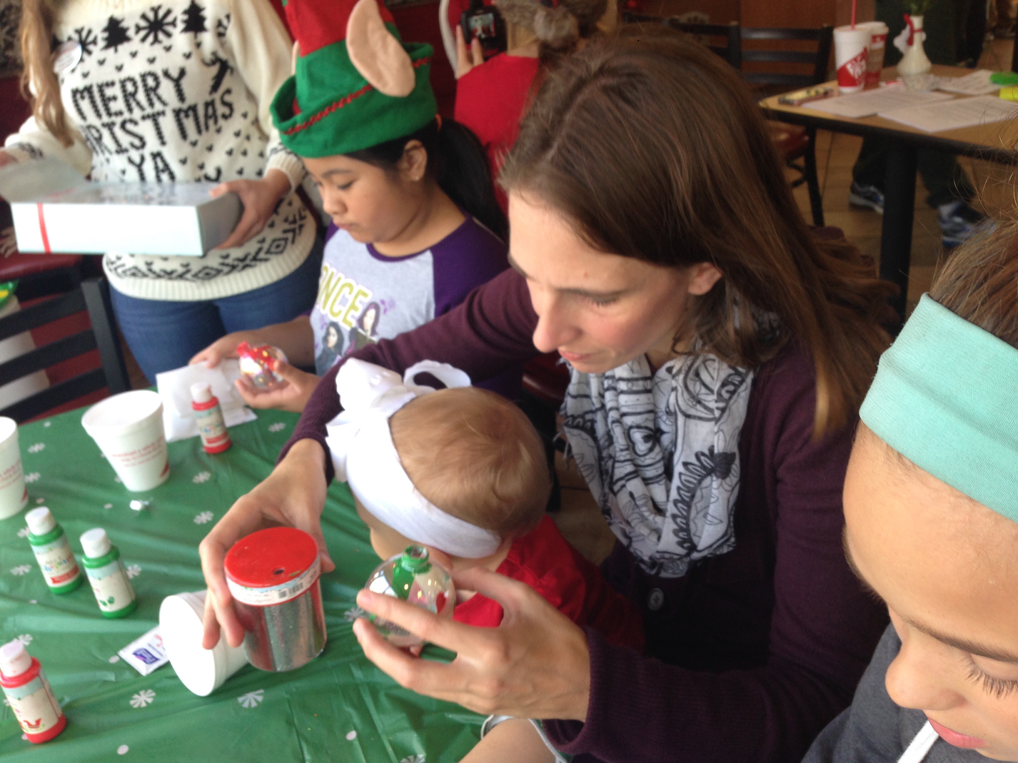 We practically had to pry her away from him. Luckily, she saw the train after we got our cookies and hot chocolate. Then she wasn’t looking for him as much so we could enjoy the other festivities.
