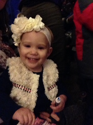 The night wasn’t complete without getting a picture with Wesley. Lucy is just in awe of him. Then we rushed to the van to warm up…