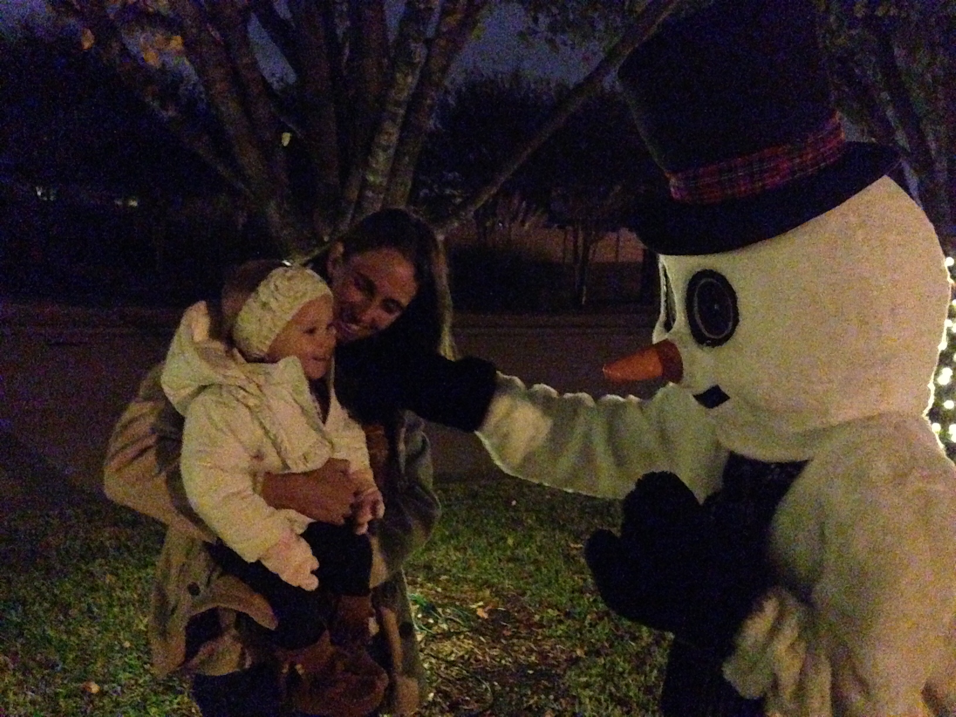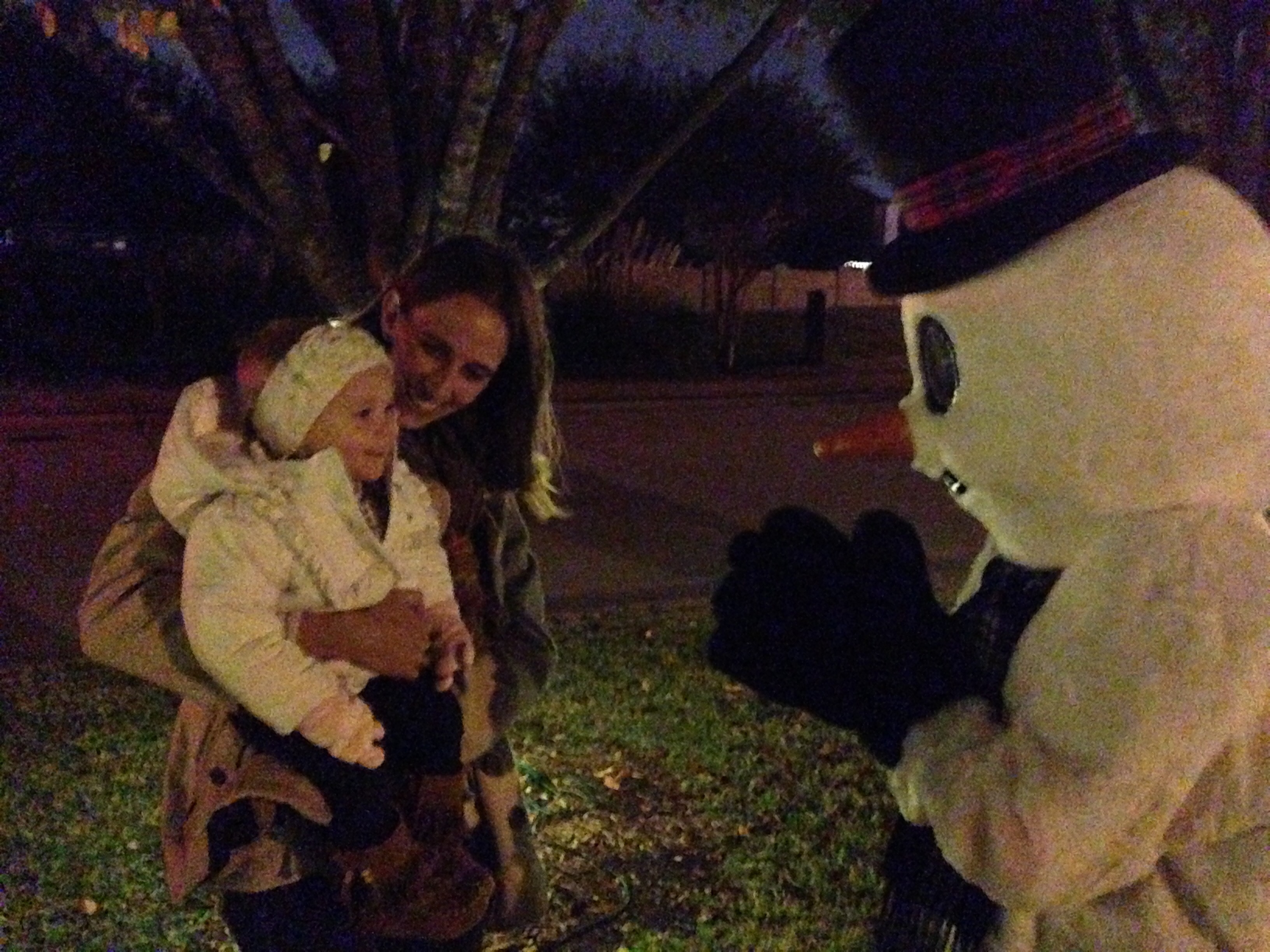 I LOVE how our neighborhood really makes its residents feel special for the holidays. When we arrived at the party, we were greeted by Frosty. Lucy fell in ultimate love with him. She kept having us chase him around so she could just sit there and smile at him. It was absolutely precious!βΊοΈ