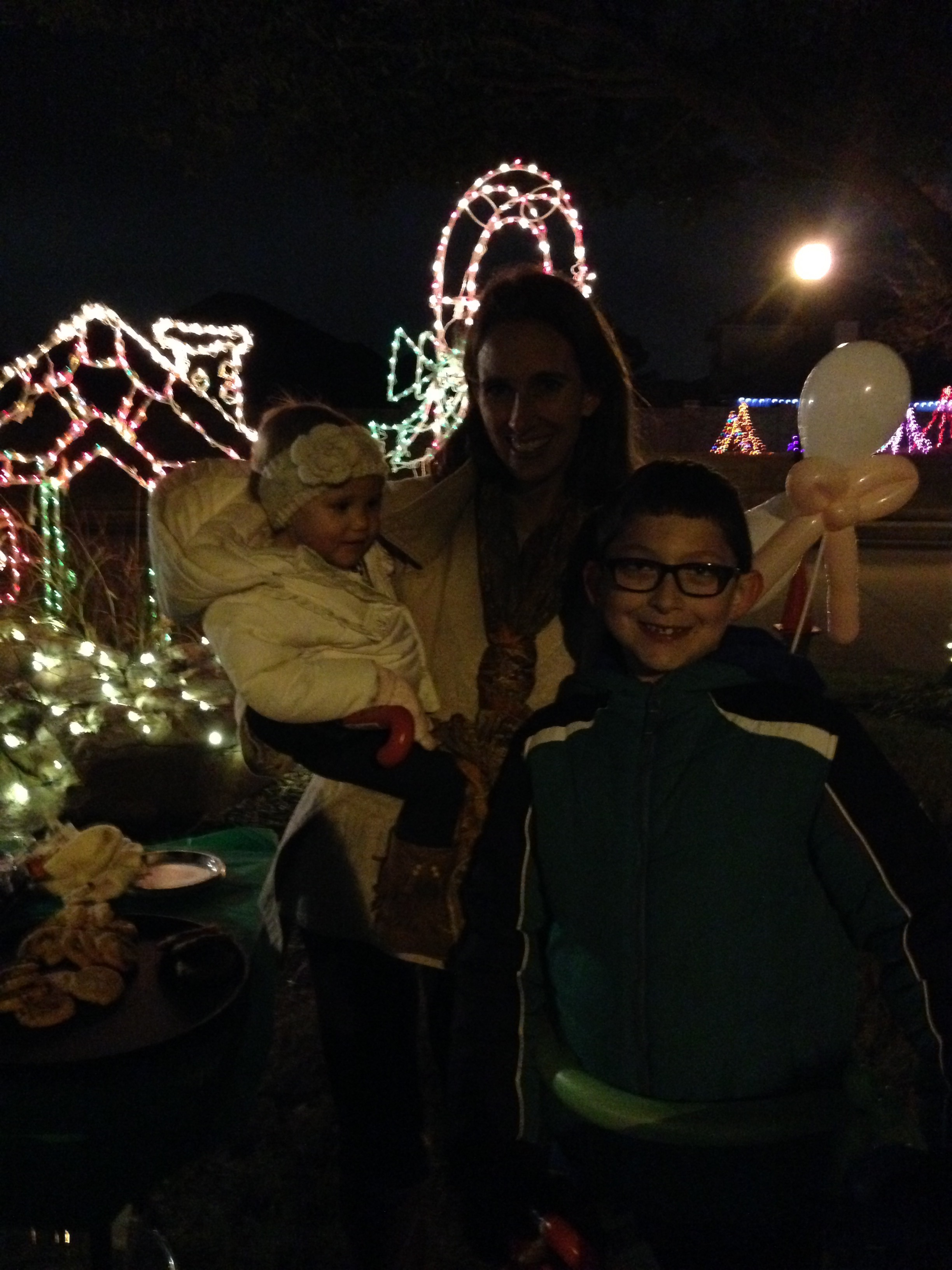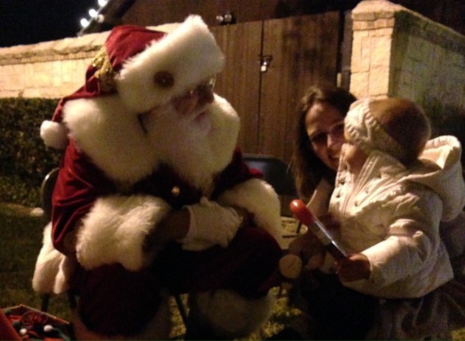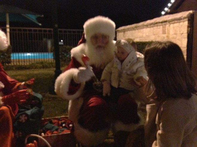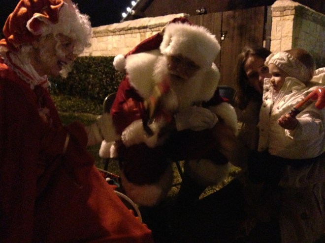 This time our Santa visit was a success. Tonight was our neighborhood Christmas party, and aside from it being pretty cold and windy, it was great fun!