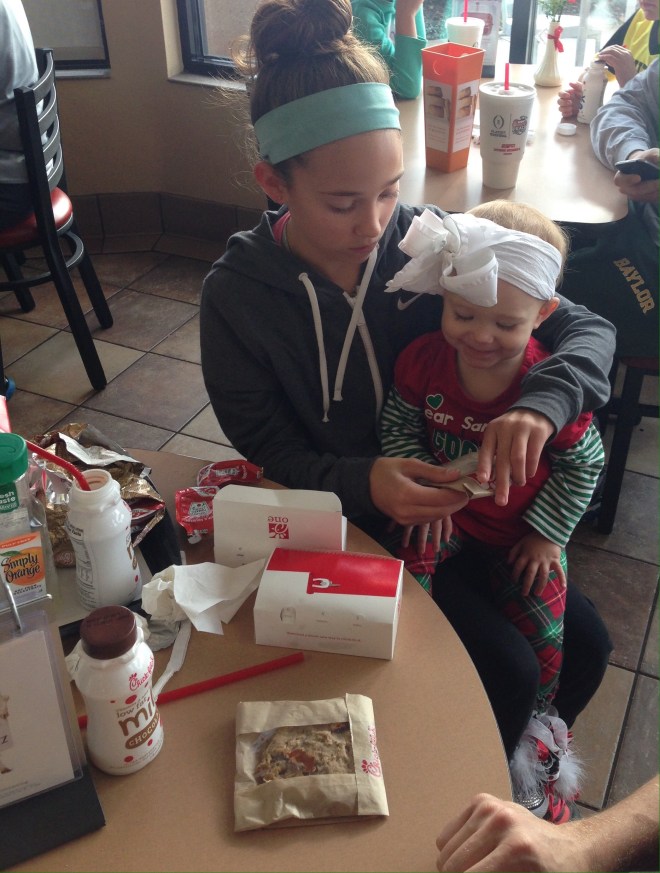 I LOVE our Chick FilA! They do the cutest things. The boys have been begging to go to breakfast with Santa Cow for weeks now, and today was the day! Go figure after all that waiting, Alex was so tired from last night, he didn’t want to get up. So, we took Brie, William, Natalie,and Lucy.