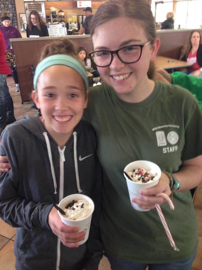 and created their own custom hot chocolate, including sprinkles, marshmallows, and chocolate dipped spoons with crushed peppermint.