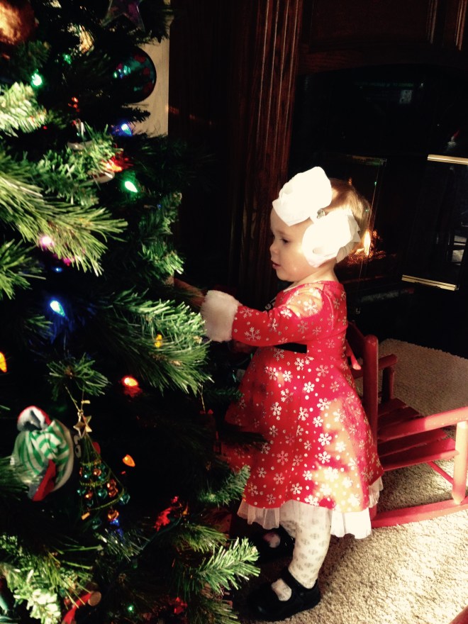 I wanted to get a picture of Lucy so bad in front of the tree, but she kept sitting for about 2 seconds, then would run away laughing.