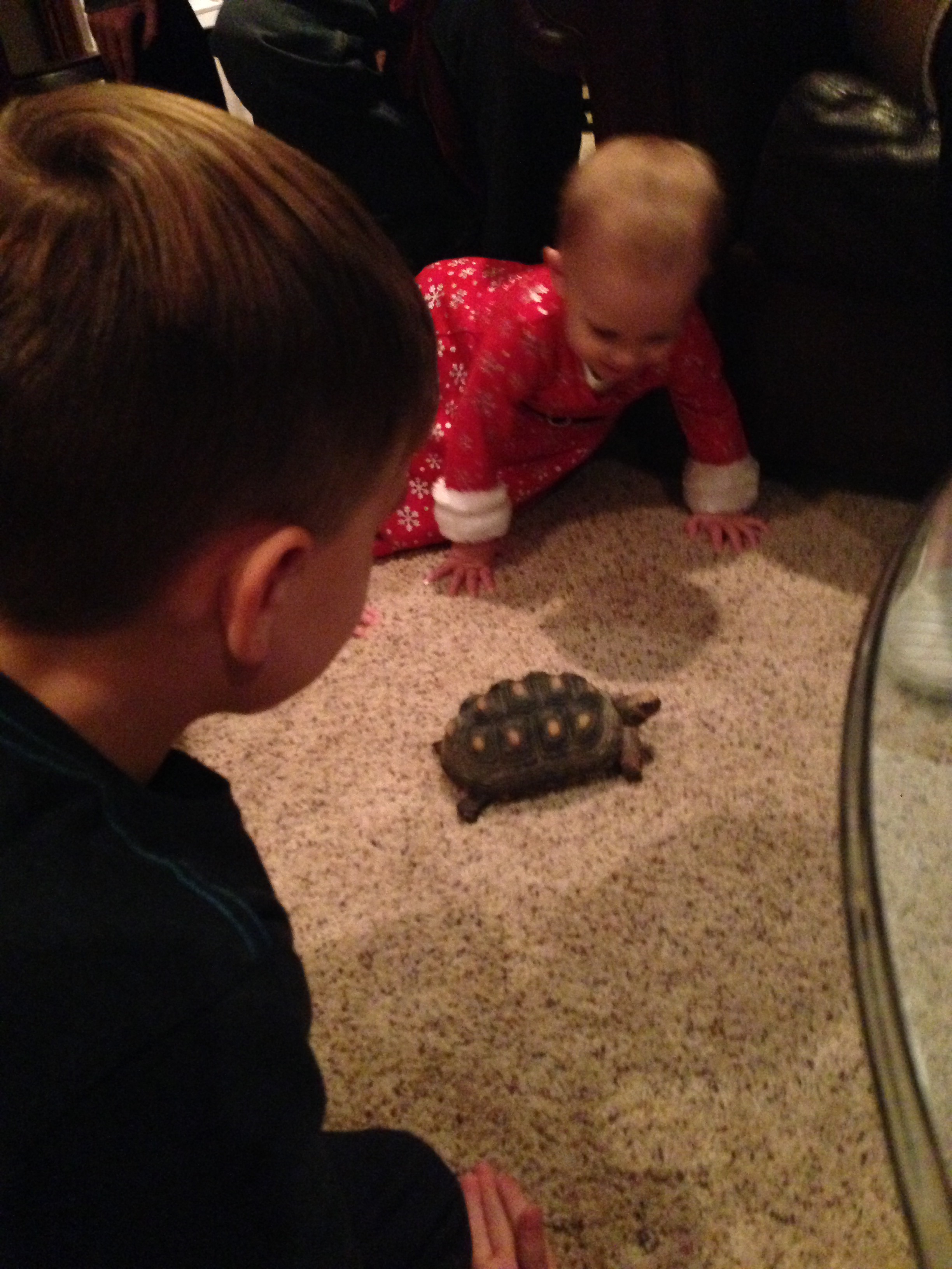Miller brought his tortoise, and the kids were so excited to play with it. Poor thing! I bet these big old creatures handling it terrified it! The kids sure loved it though.