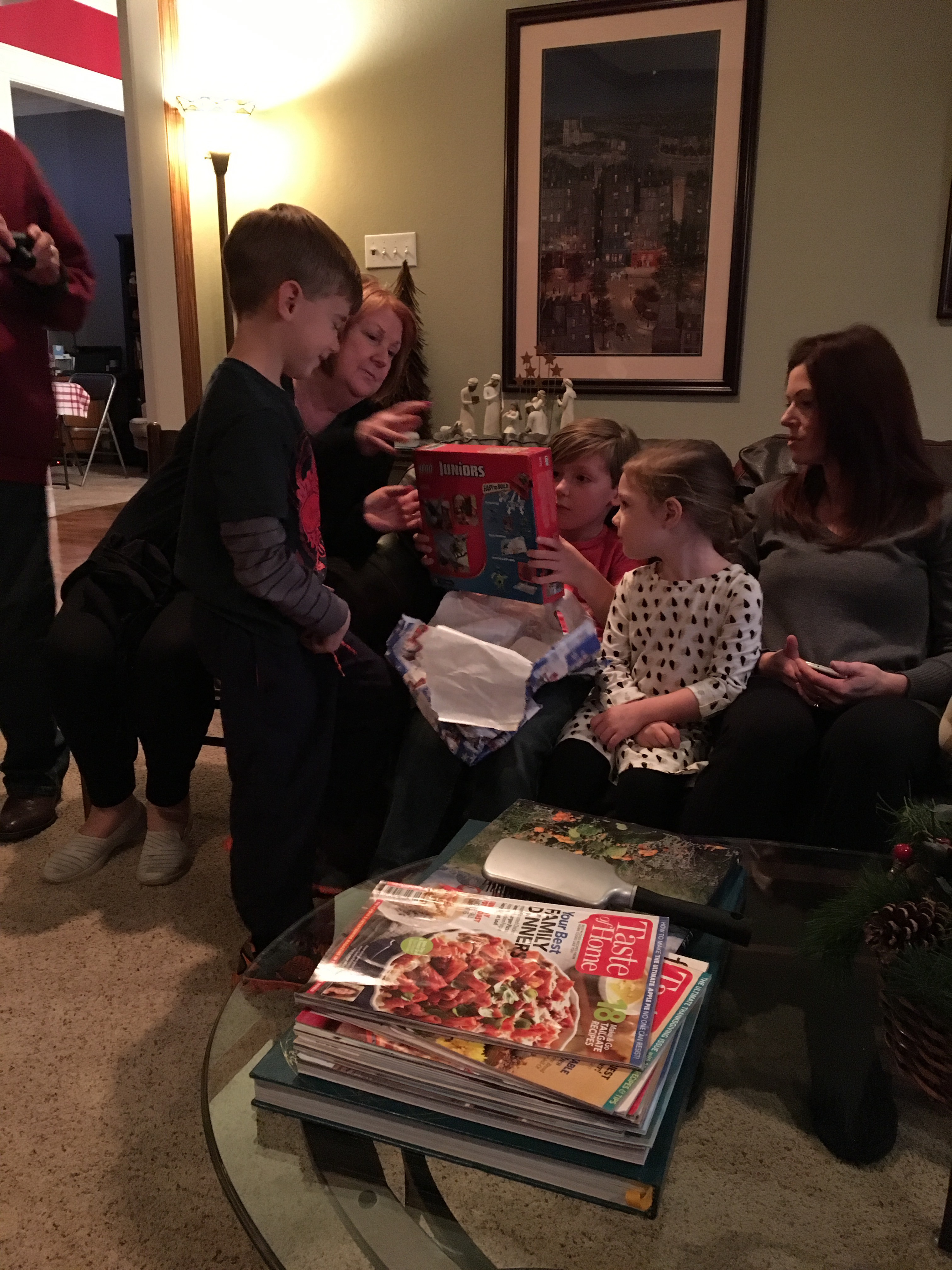 This afternoon, we went over to Grandma and Grandpa’s when Lu woke up. Emily, Dusty, and the kids are going to Steve and Sally’s for Christmas this year, so we had an early Christmas celebration with them.