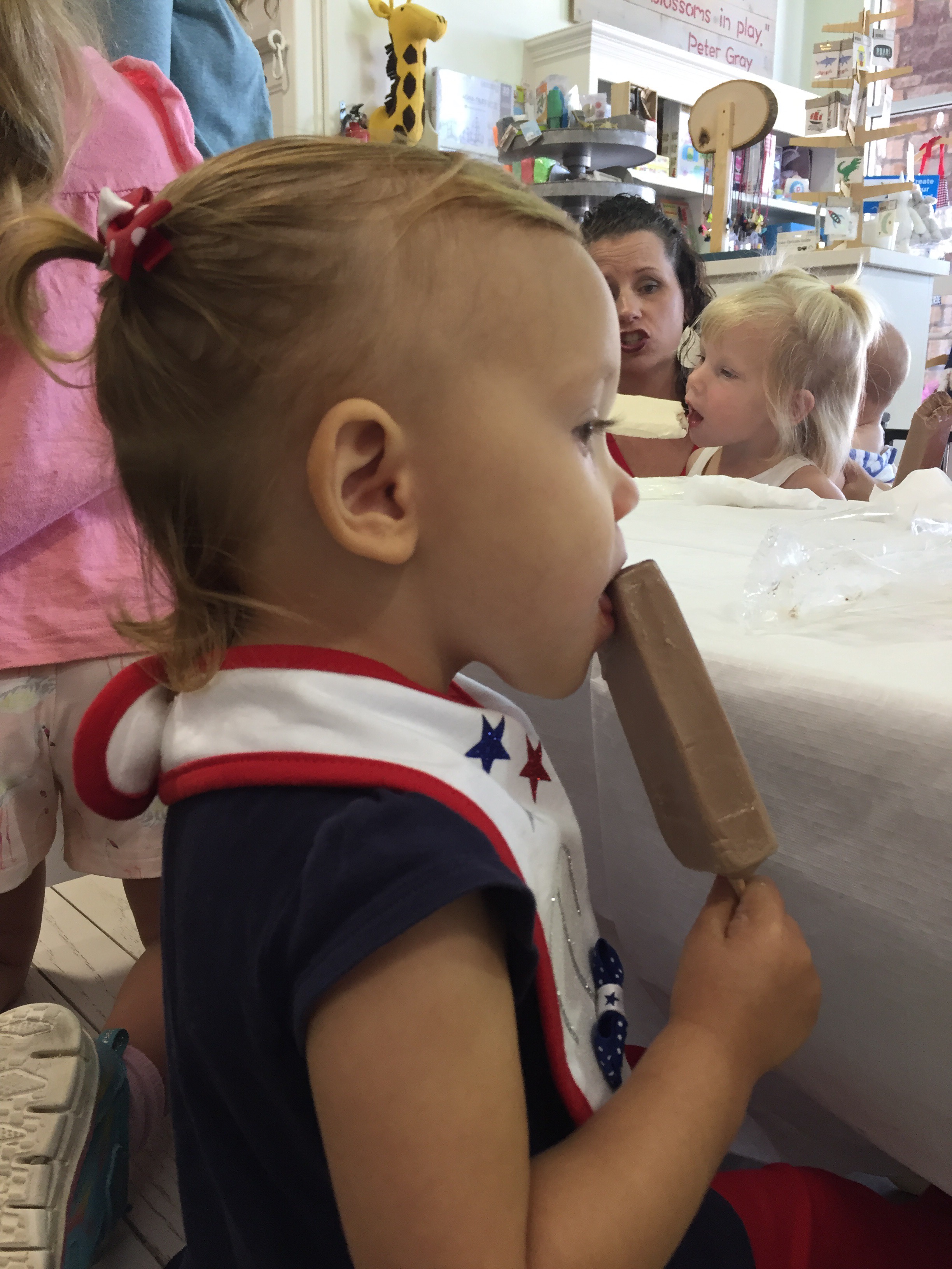 and even ate popsicles! Lucy LOVED chocolate, and was one of the only kids who sat there to finish the entire thing! π€£ (Big mess and all!)