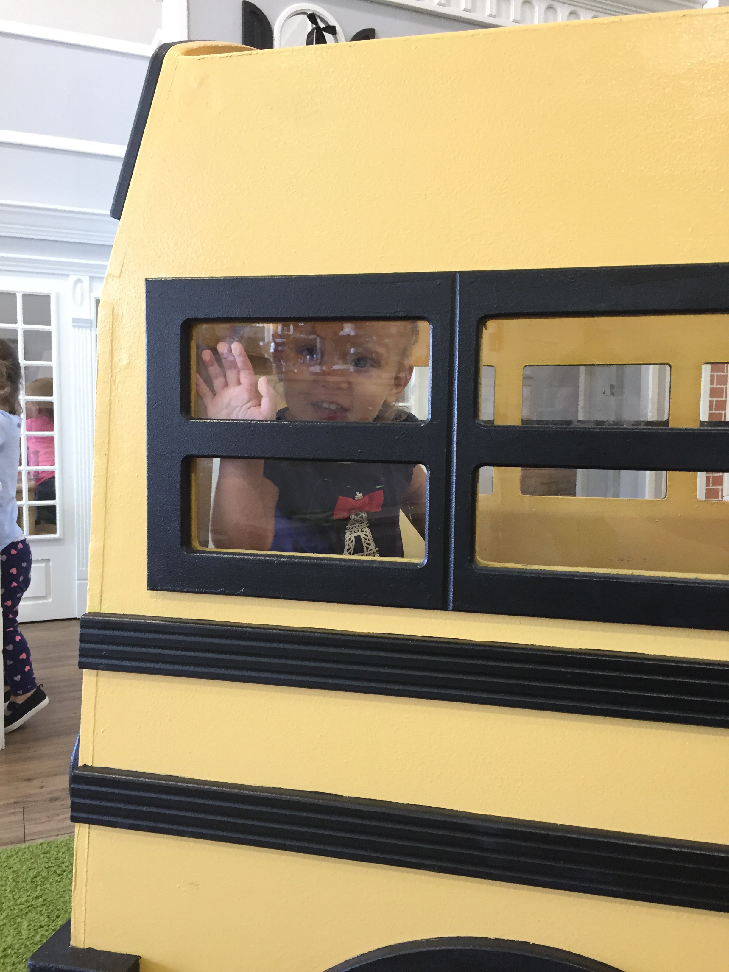 She played in buses, stores, with babies, food, blocks, and tubes.