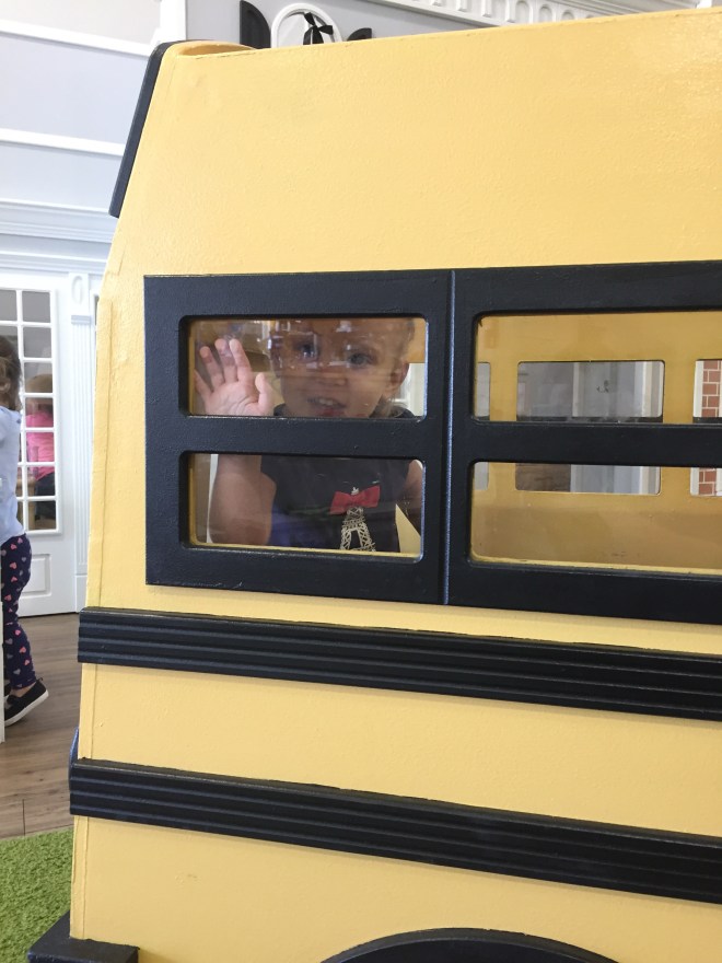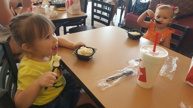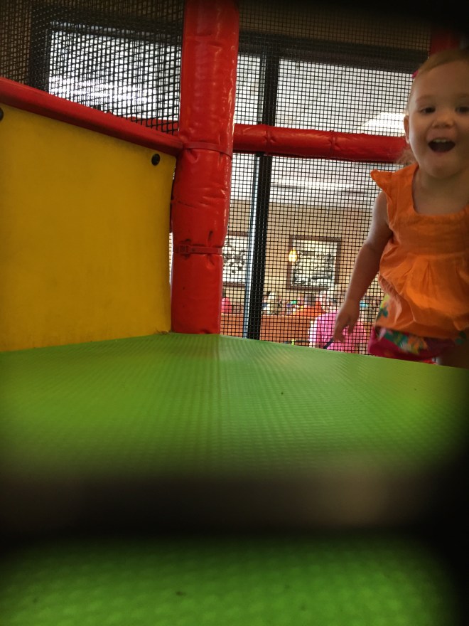 Silly Goose! When we got to Chick fil-A, that all changed. She ate, and played, slid down the slide…