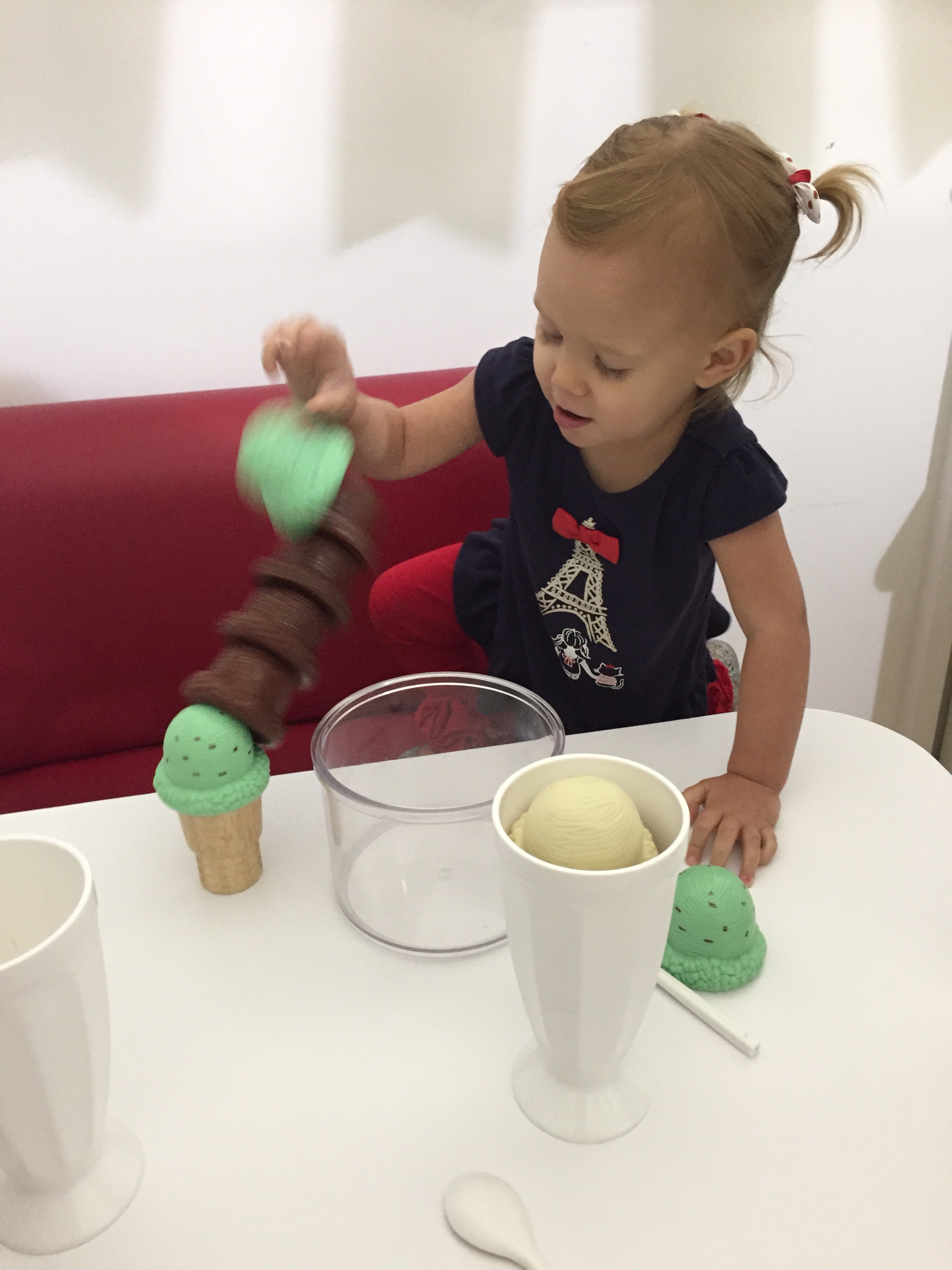 Lucy loved serving up ice cream at the ice cream shop to all its “customers.”