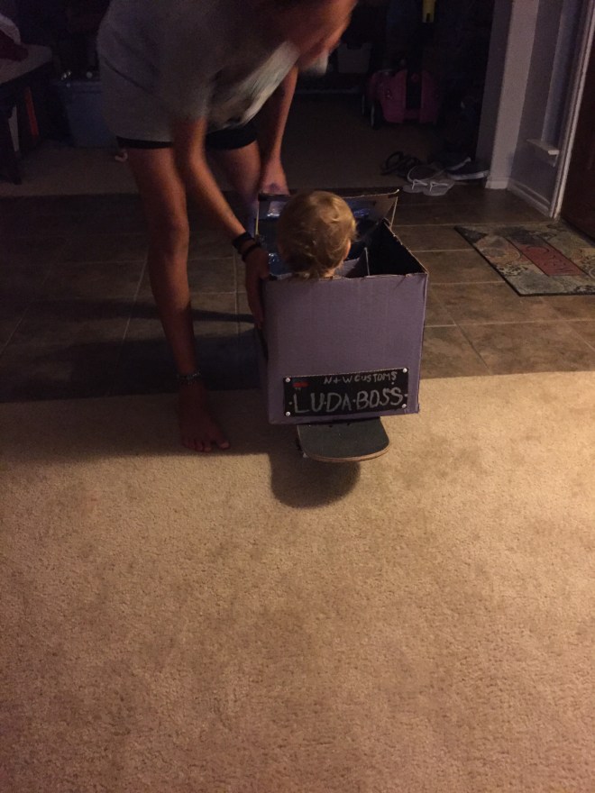 Imagination clicked on and they disappeared for hours creating this incredible little masterpiece of a car for Lucy.