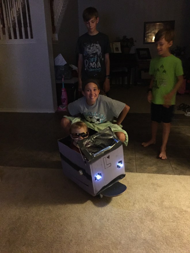 I love when the kids complain about having nothing to do. We have a house full of all kinds of games and activities, yet take away all electronics, and the fun ends. Today, they were upset with us about being bored, and then this happened!: