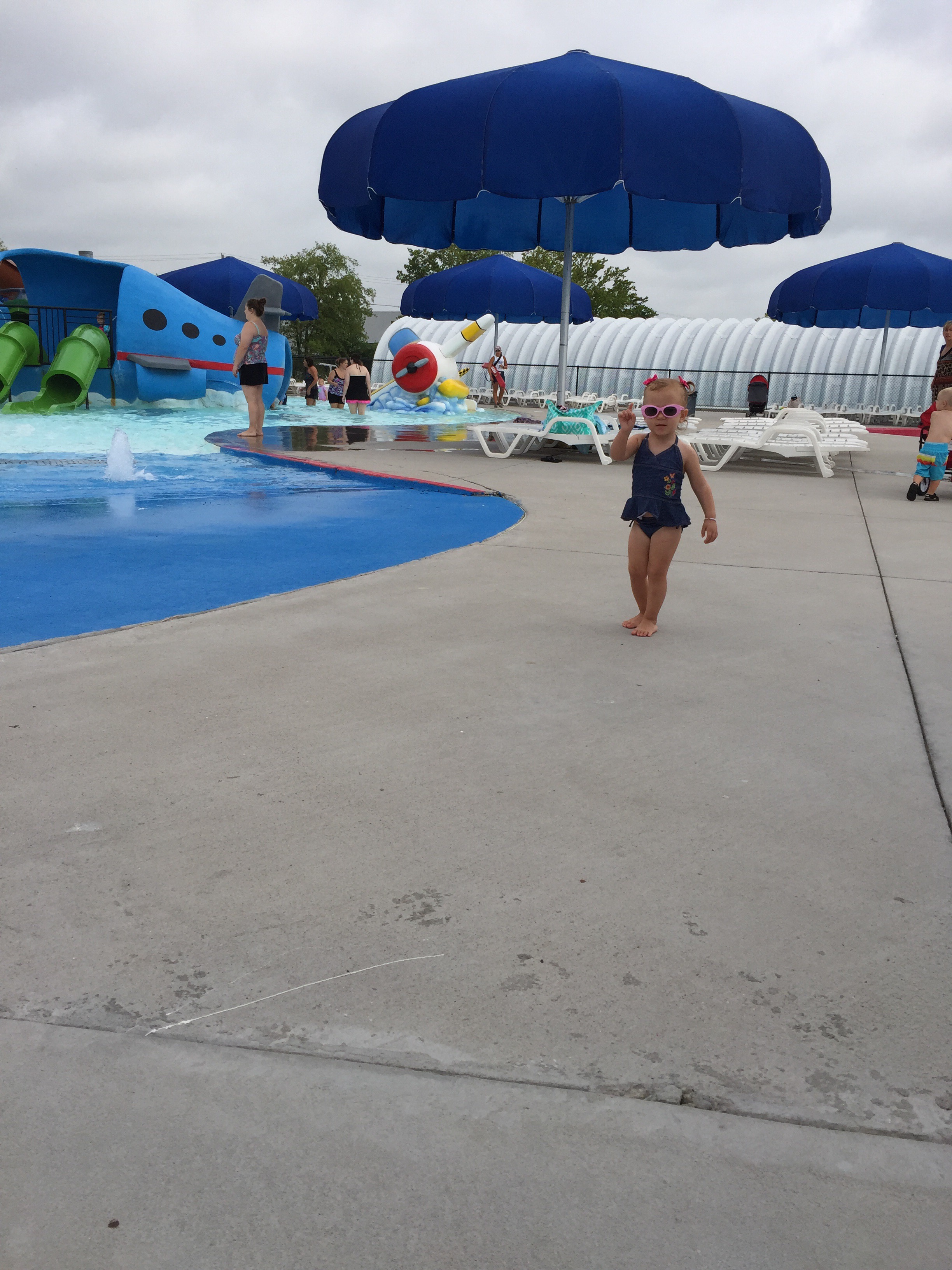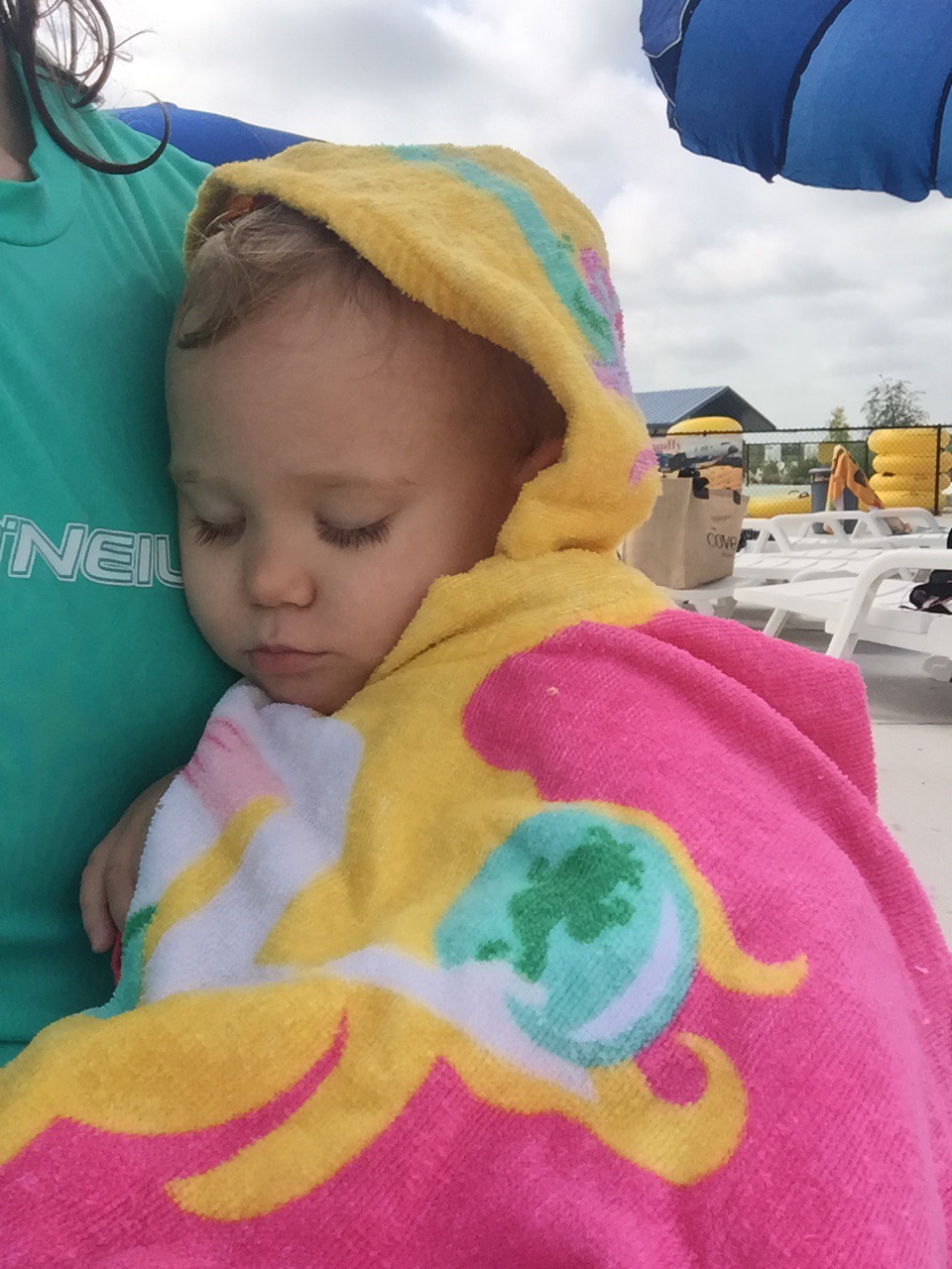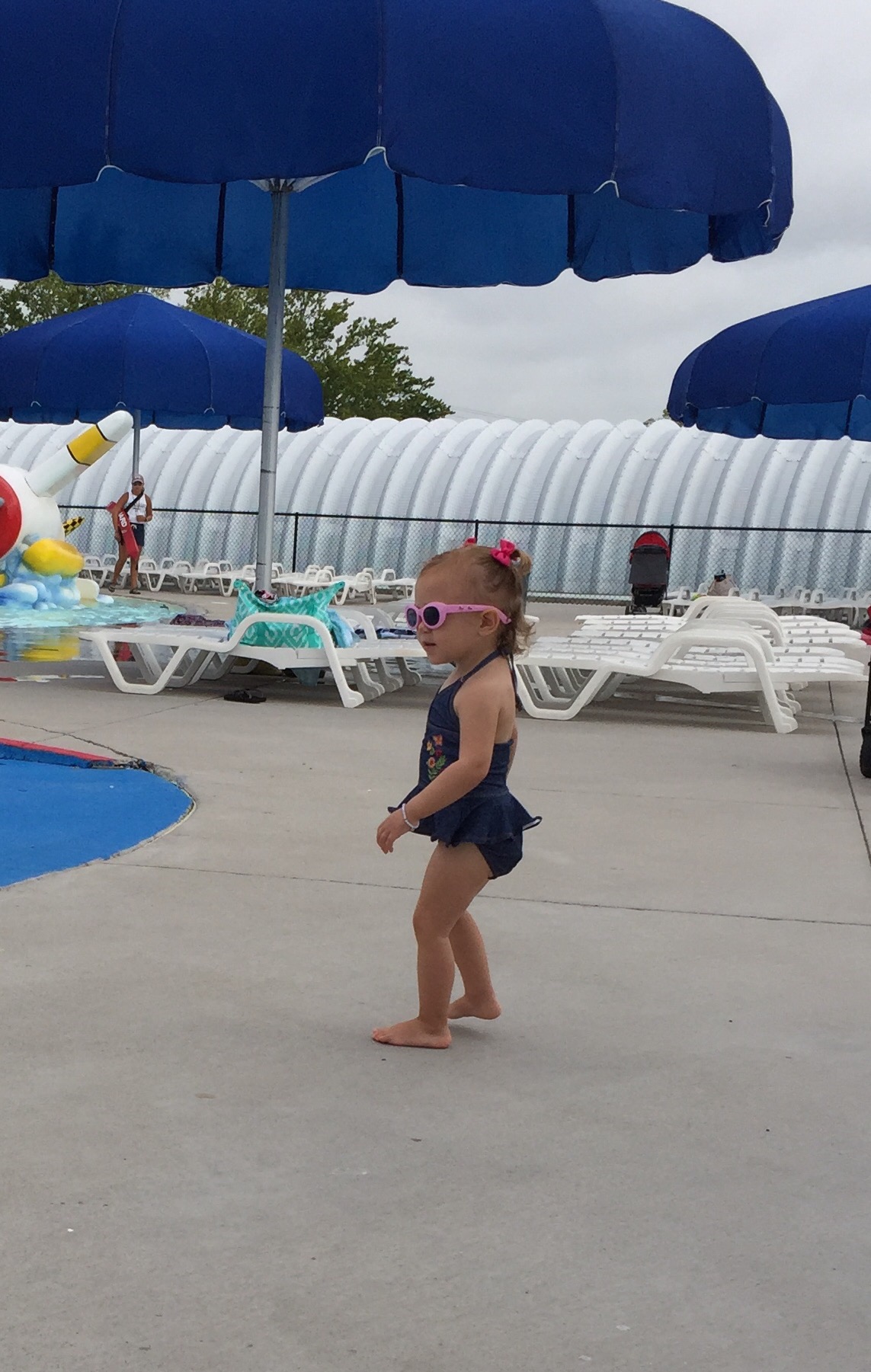 Was probably not the best idea, though, because the first slide I took Lucy down shot water up in our faces. After that, Lucy did not want much to do with being in the water. It also didn’t help having it be super windy and in the low 80s. It was chilly! Brinlee did not seem bothered by any of it. She was quite the swimming queen.