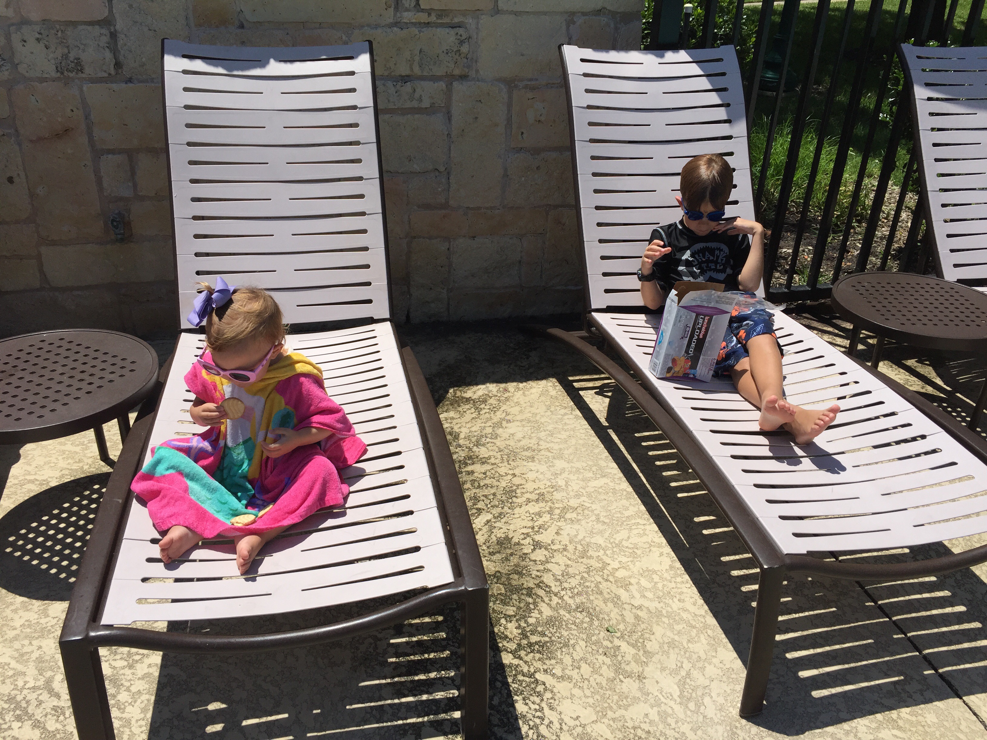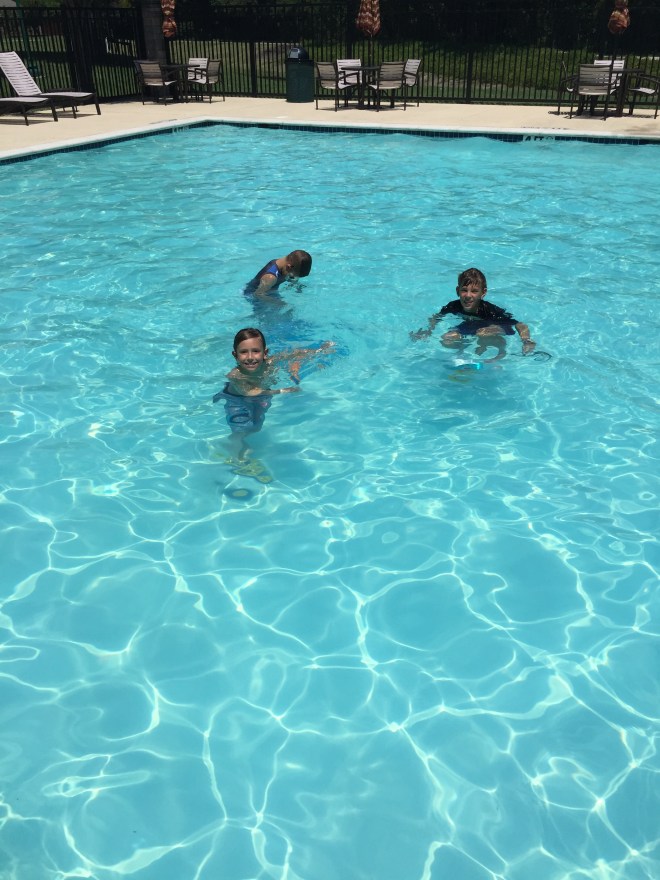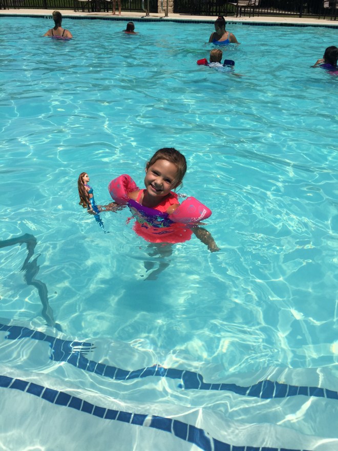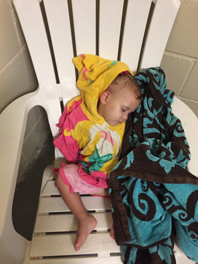 Was probably not the best idea, though, because the first slide I took Lucy down shot water up in our faces. After that, Lucy did not want much to do with being in the water. It also didn’t help having it be super windy and in the low 80s. It was chilly! Brinlee did not seem bothered by any of it. She was quite the swimming queen.